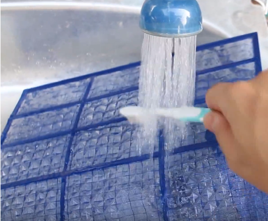 1. ถอดเอาฟิลเตอร์ออกมาเอาที่กรองฝุ่นหยาบไปล้างน้ำ ส่วนที่กรองละเอียดให้เอาแปรงปัด