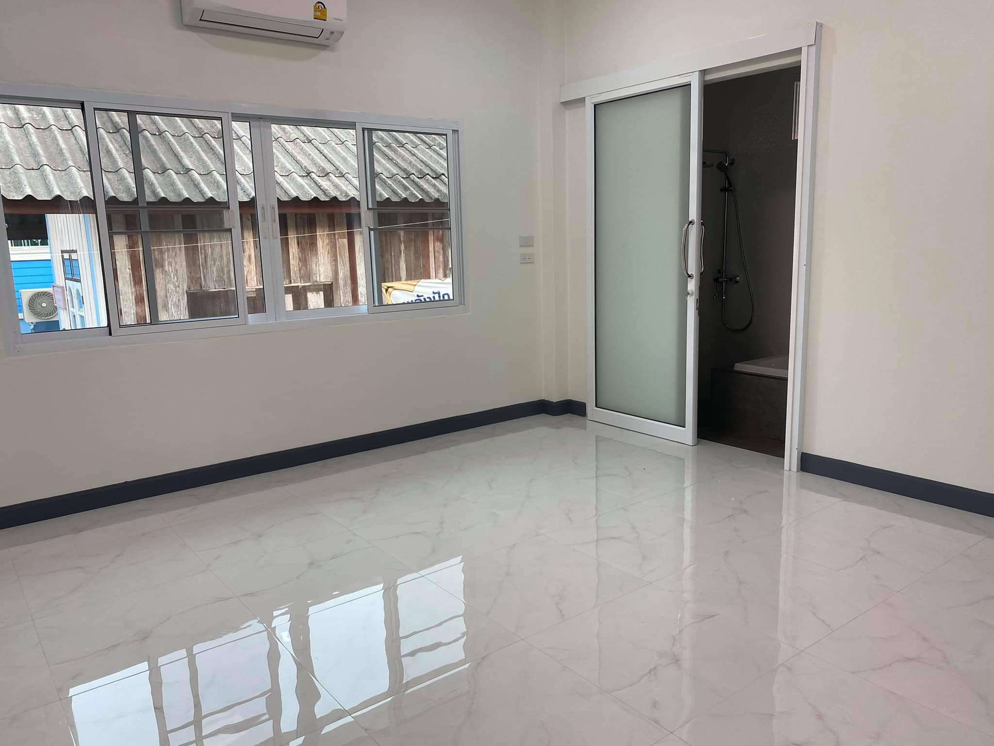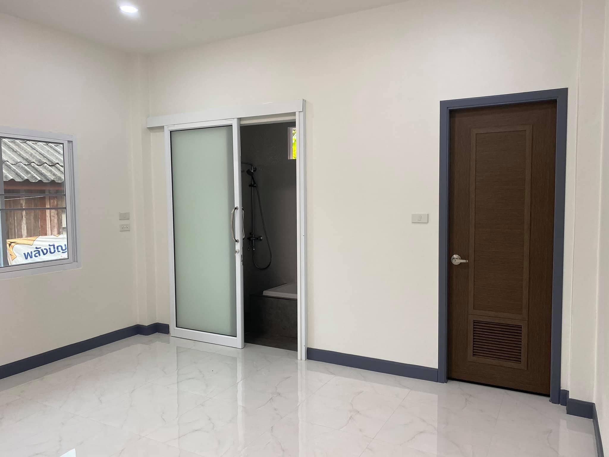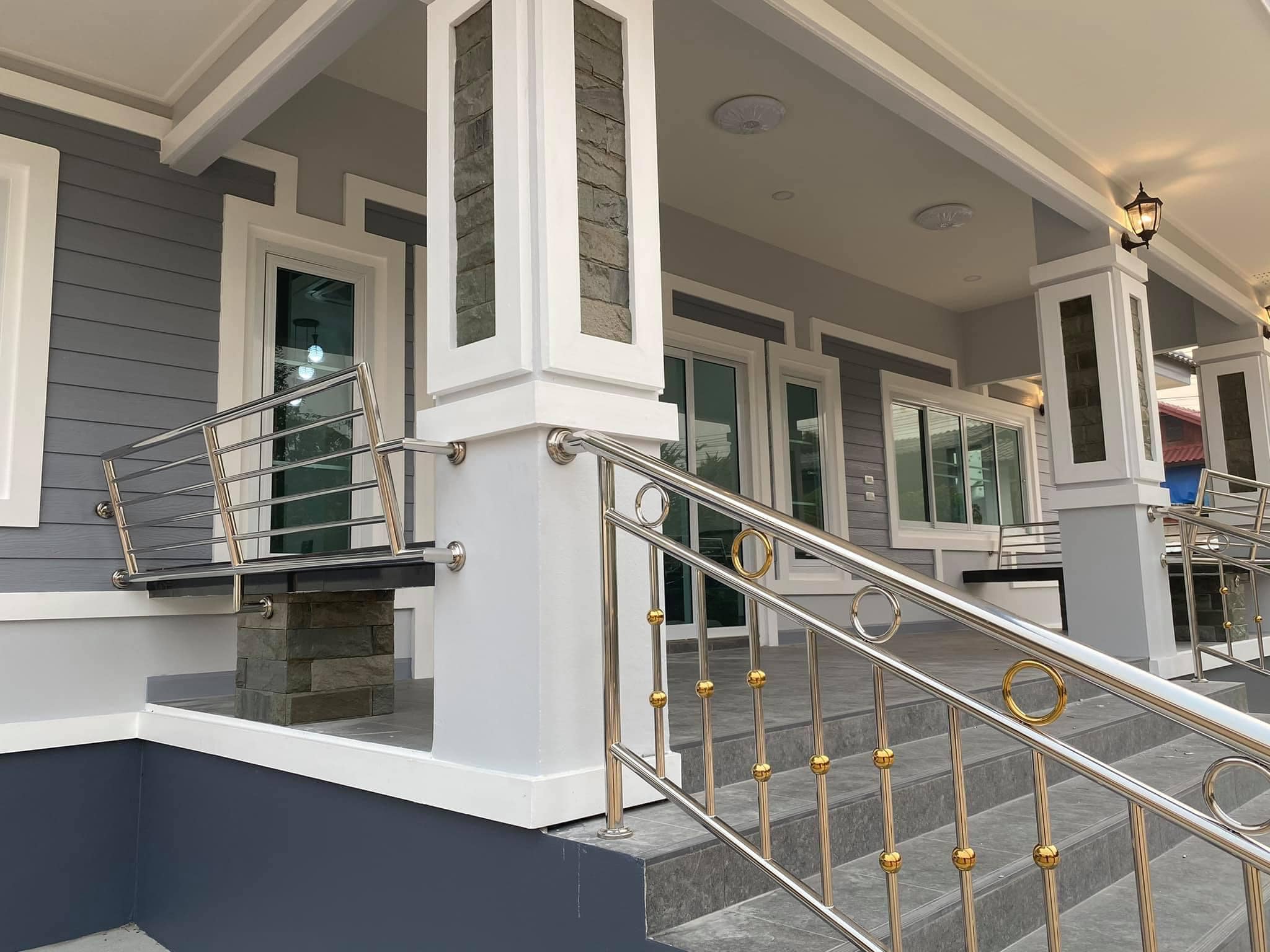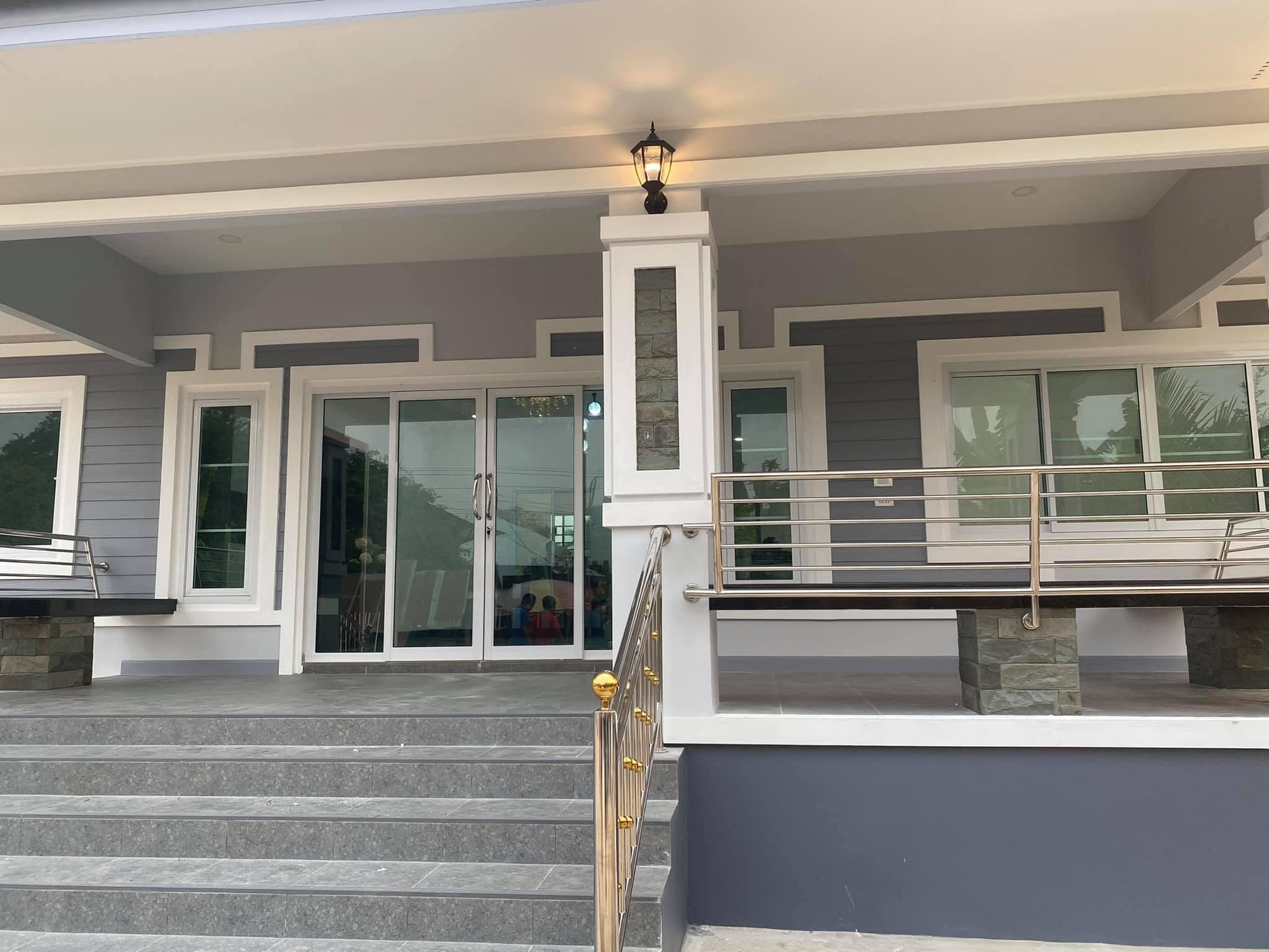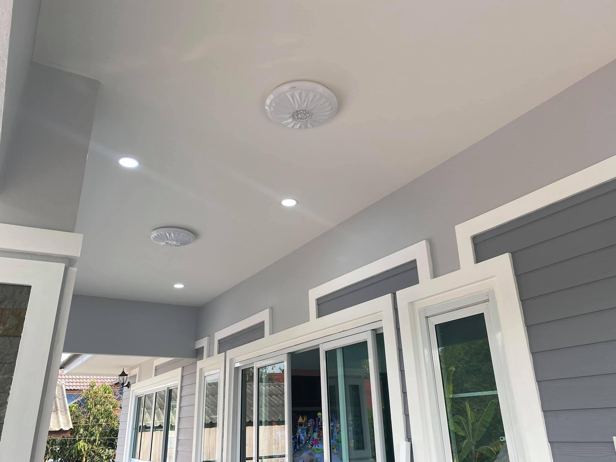 บ้านหลังนี้มาพร้อมระเบียงนั่งเล่นหน้าบ้าน ตกแต่งสีโทนสีเทา ห้องโถงสีขาวควันบุหรี่สบายตา ห้องนอนทาสีขาวควันบุหรี่สดใสตามใจเจ้าของบ้าน
