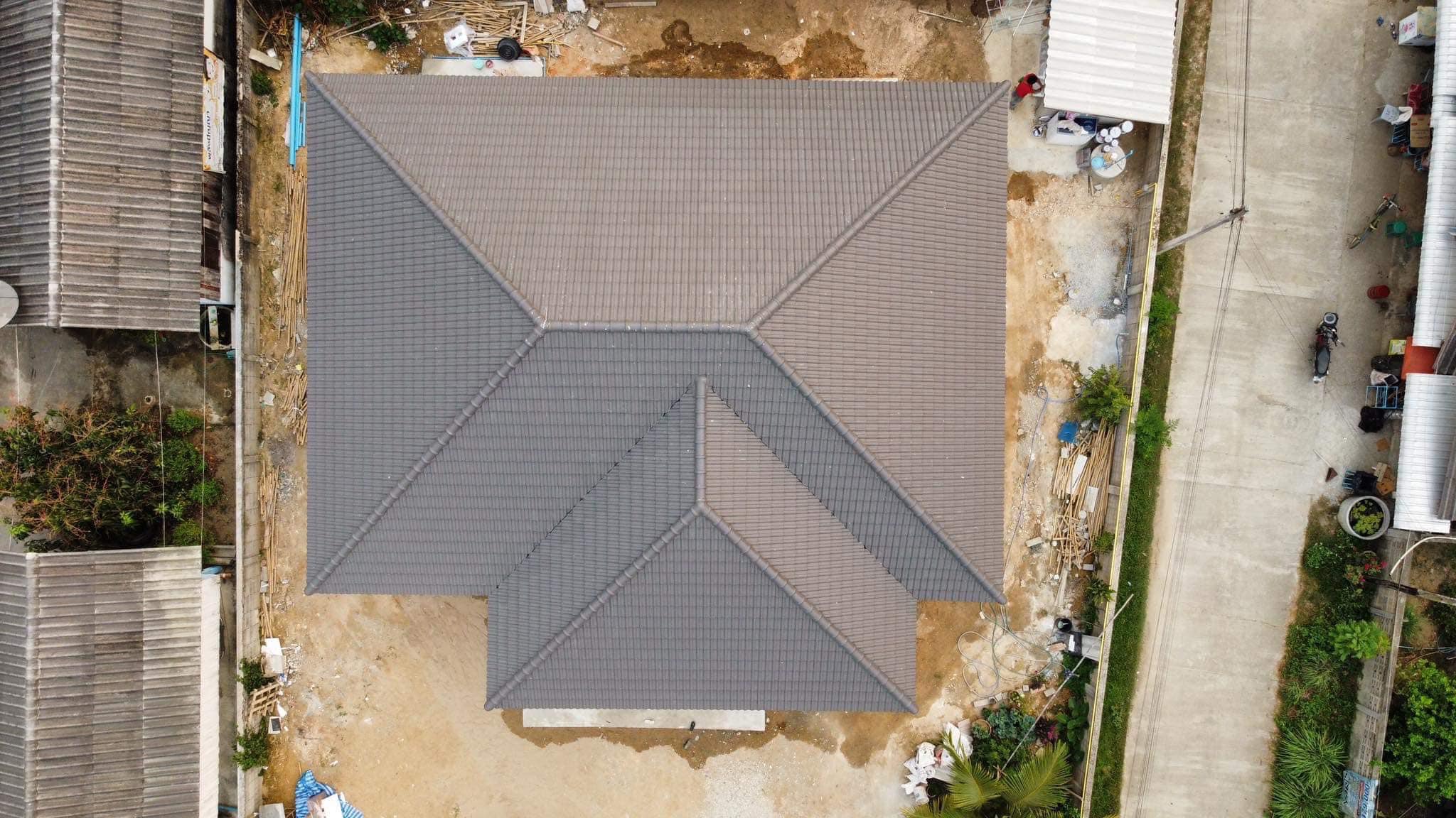 บ้านชั้นเดียว หลังคาปั้นหยา 3 ห้องนอน 2 ห้องน้ำ สีเทาสว่างๆ