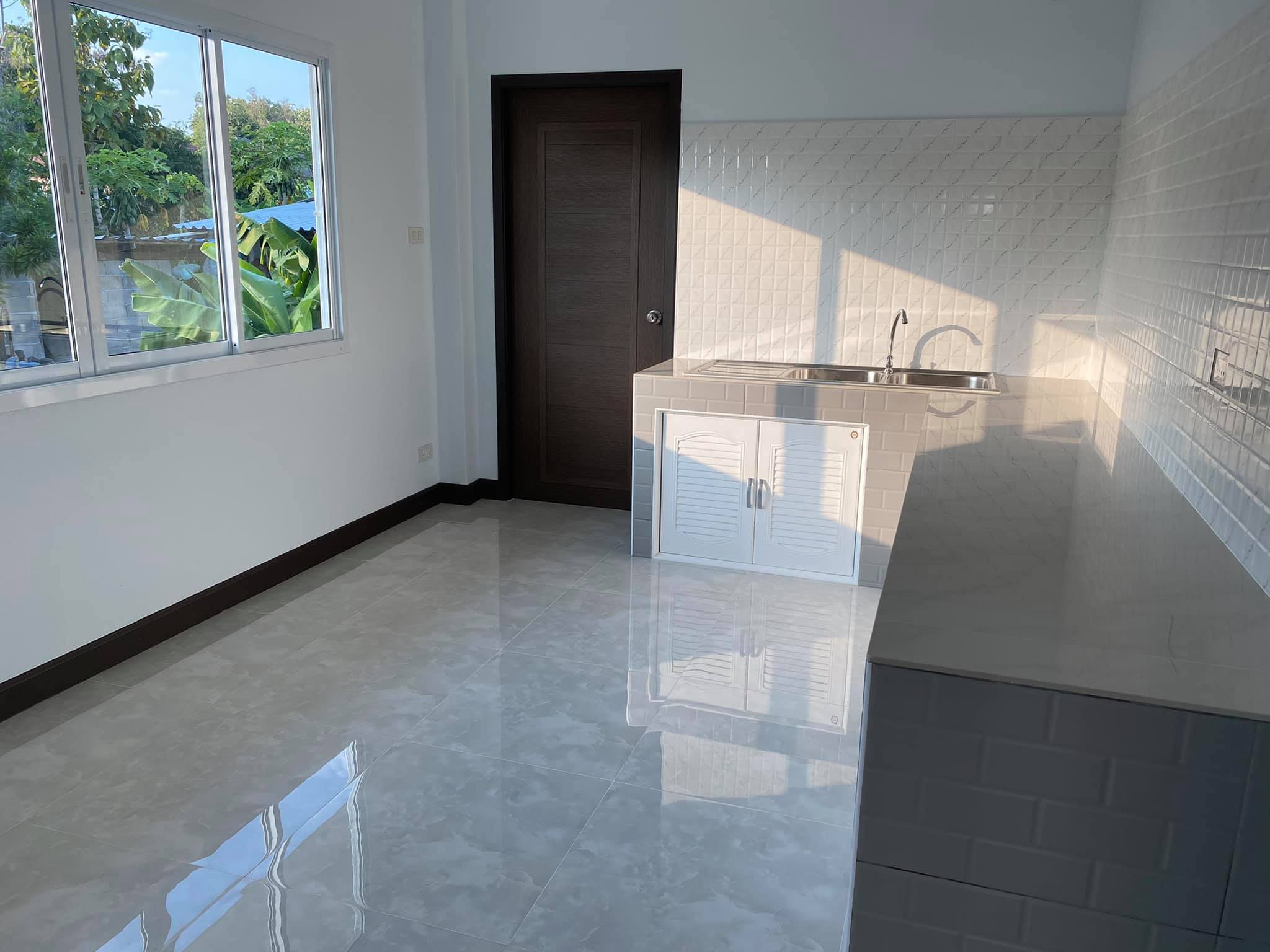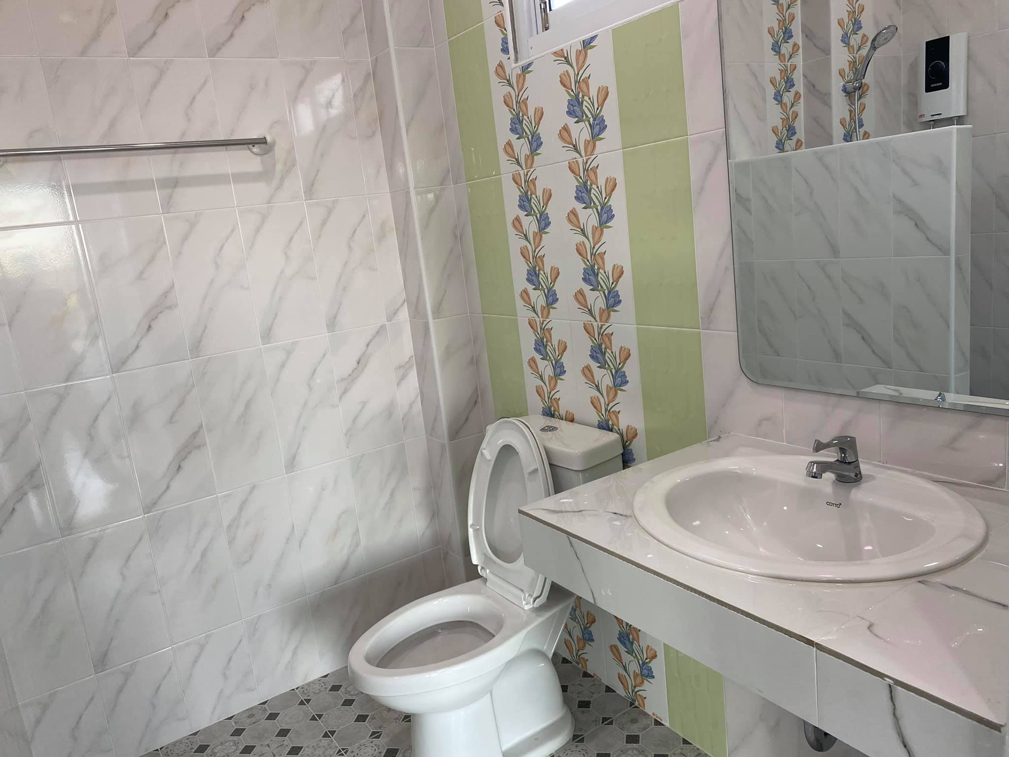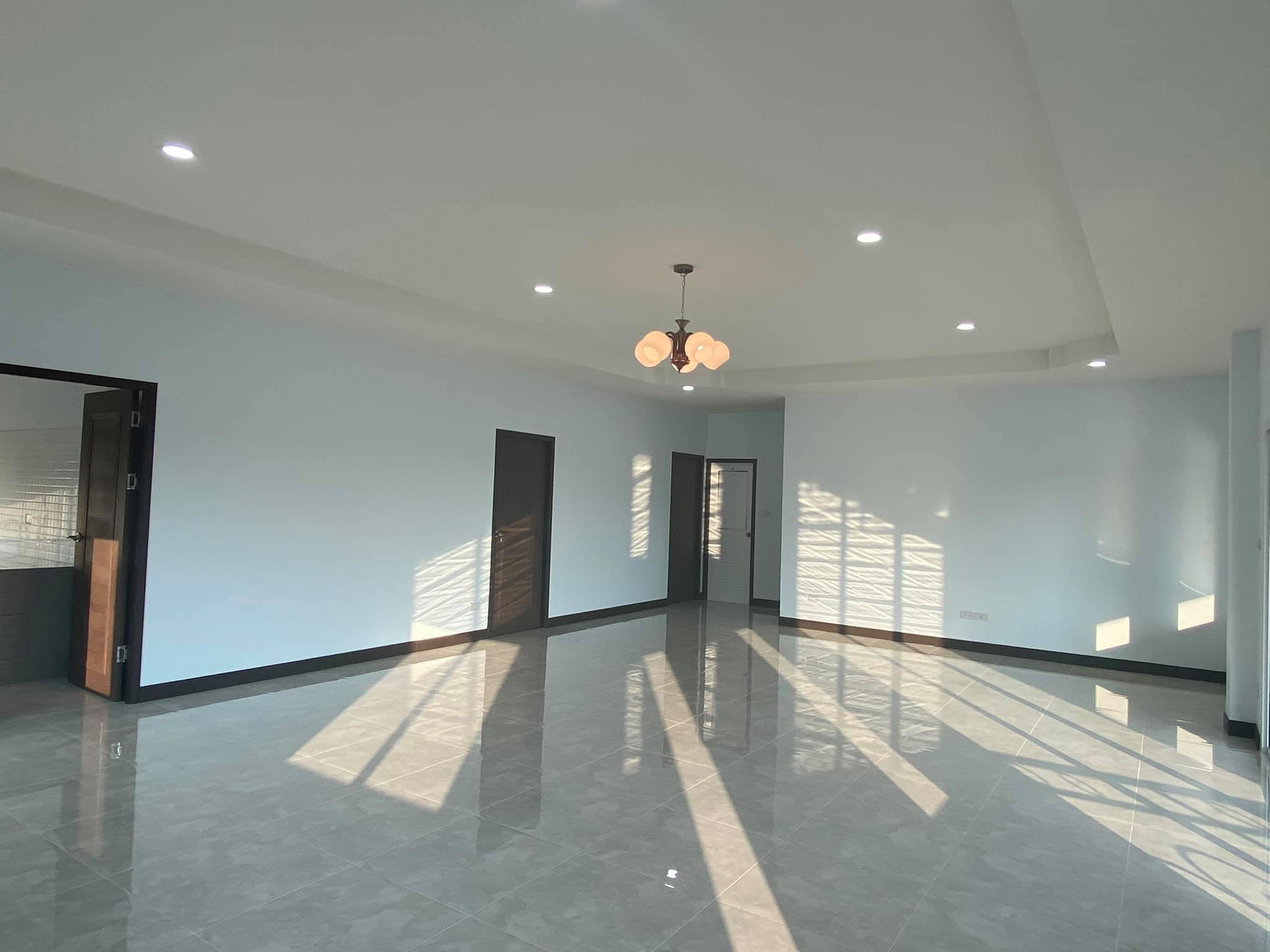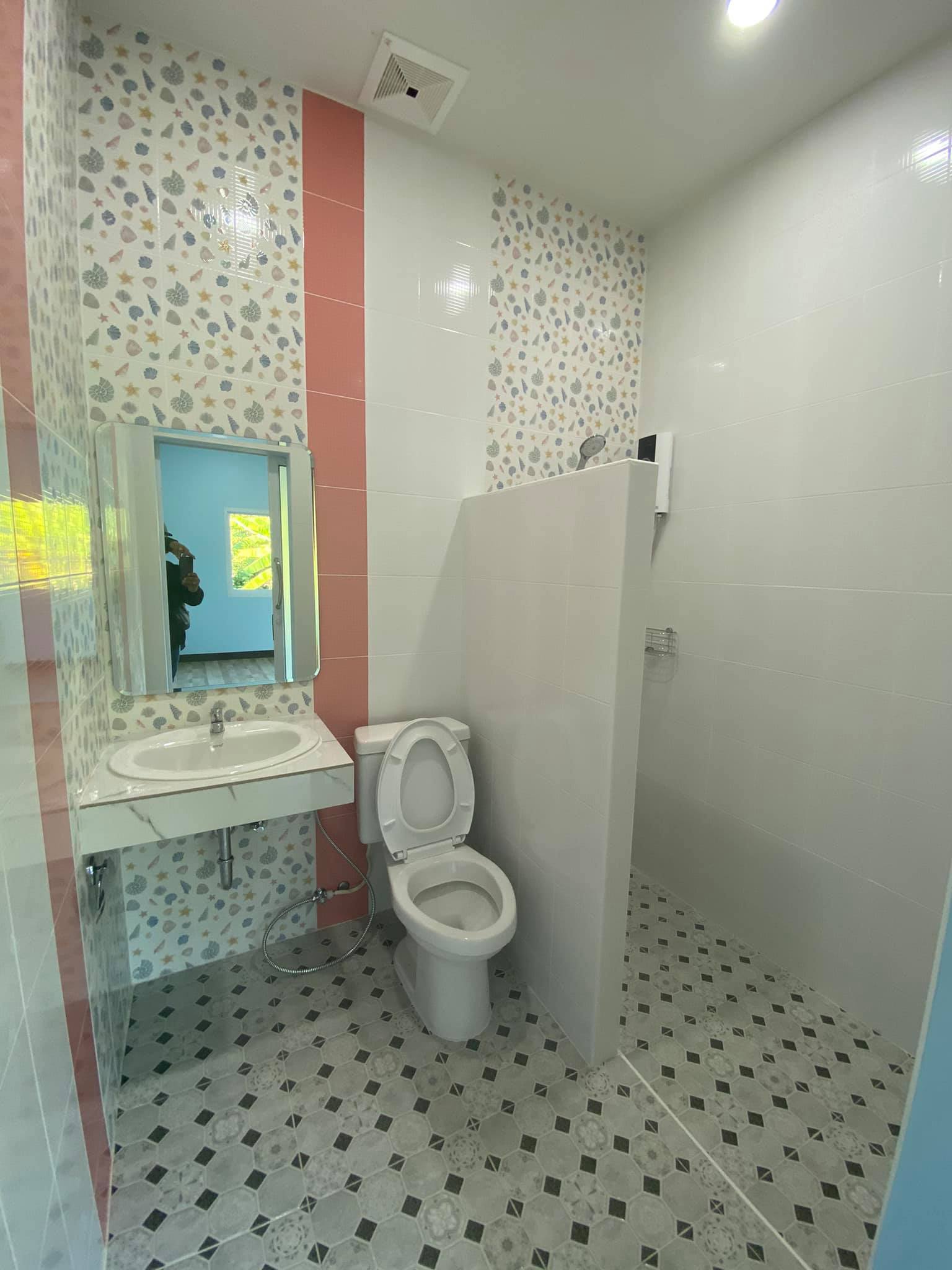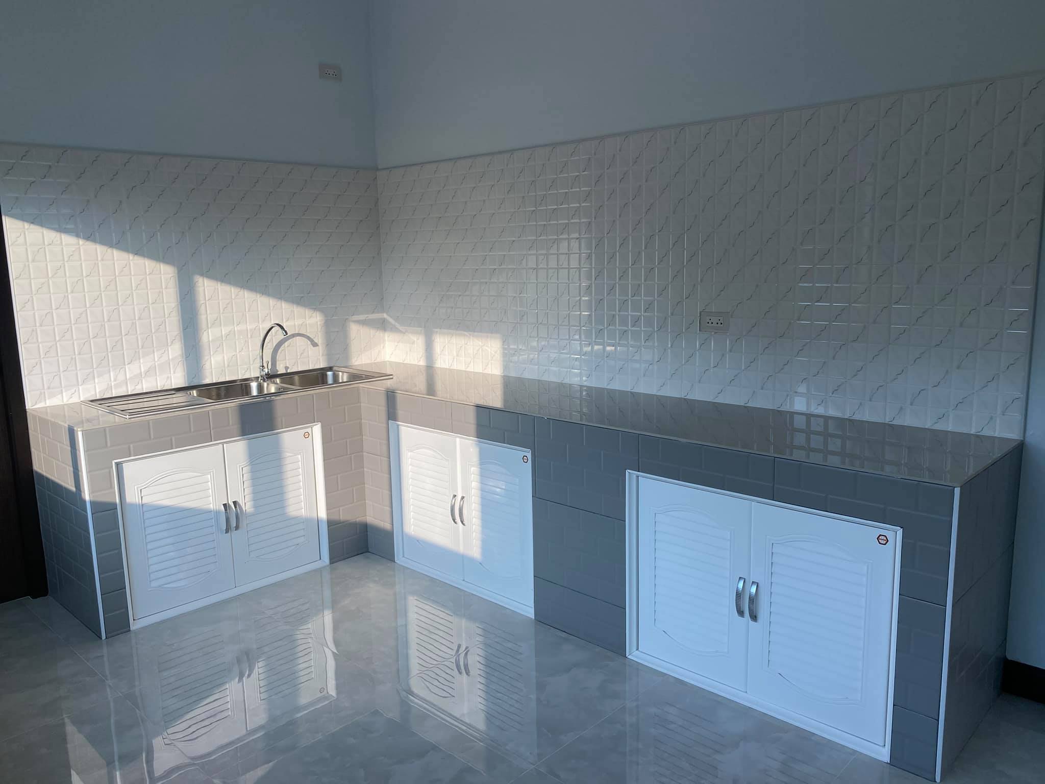 บ้านหลังนี้มาพร้อมระเบียงนั่งเล่นหน้าบ้าน ตกแต่งสีโทนสีเทา ห้องโถงสีขาวควันบุหรี่สบายตา ห้องนอนทาสี ฟ้าอ่อนสดใสตามใจเจ้าของบ้าน