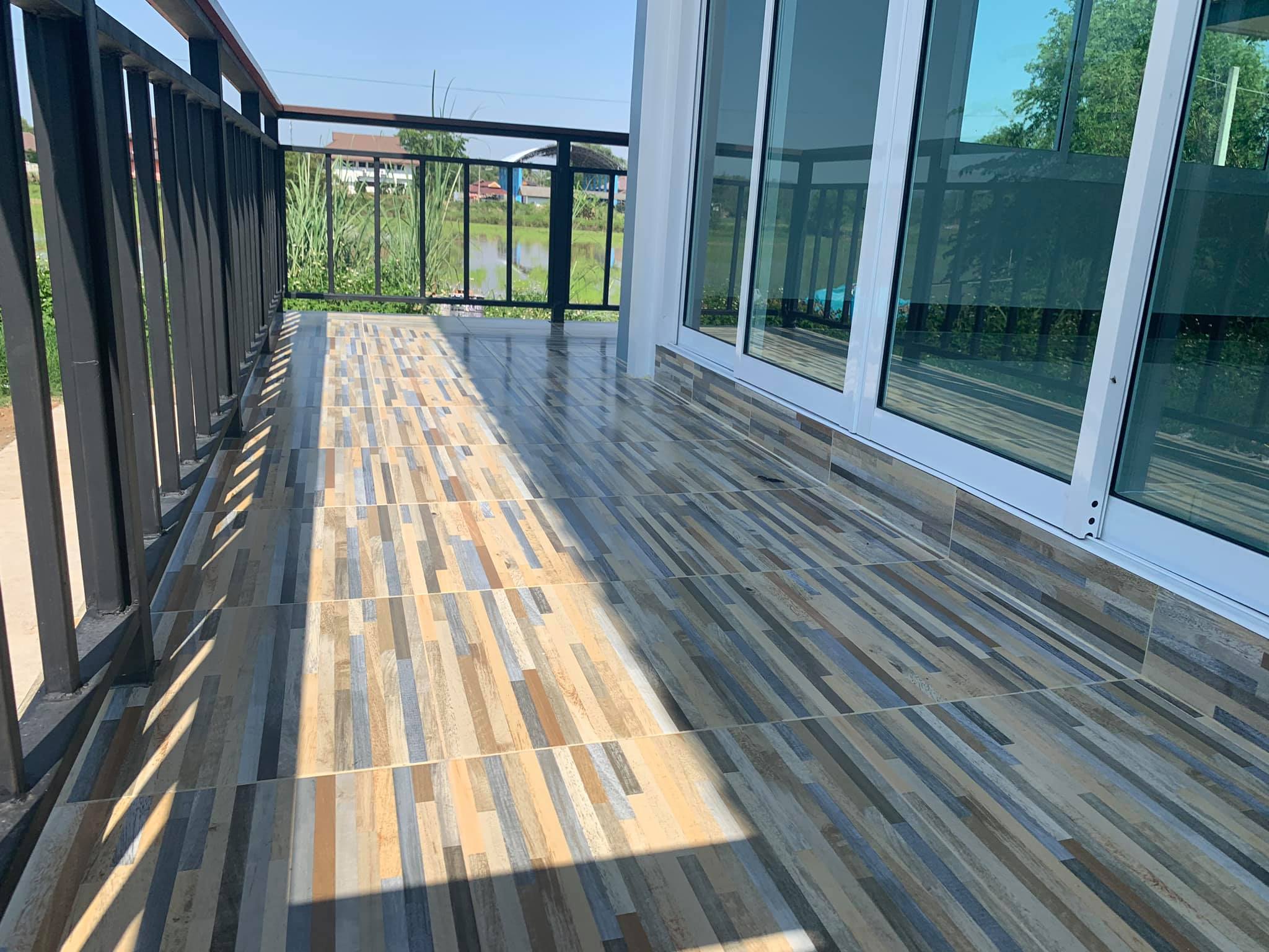 บ้านหลังนี้มาพร้อมระเบียงนั่งเล่นหน้าบ้าน ตกแต่งสีโทนสีฟ้าสดใส ห้องโถง ห้องนอนสีขาวควันบุหรี่อ่อนๆตามใจเจ้าของบ้าน