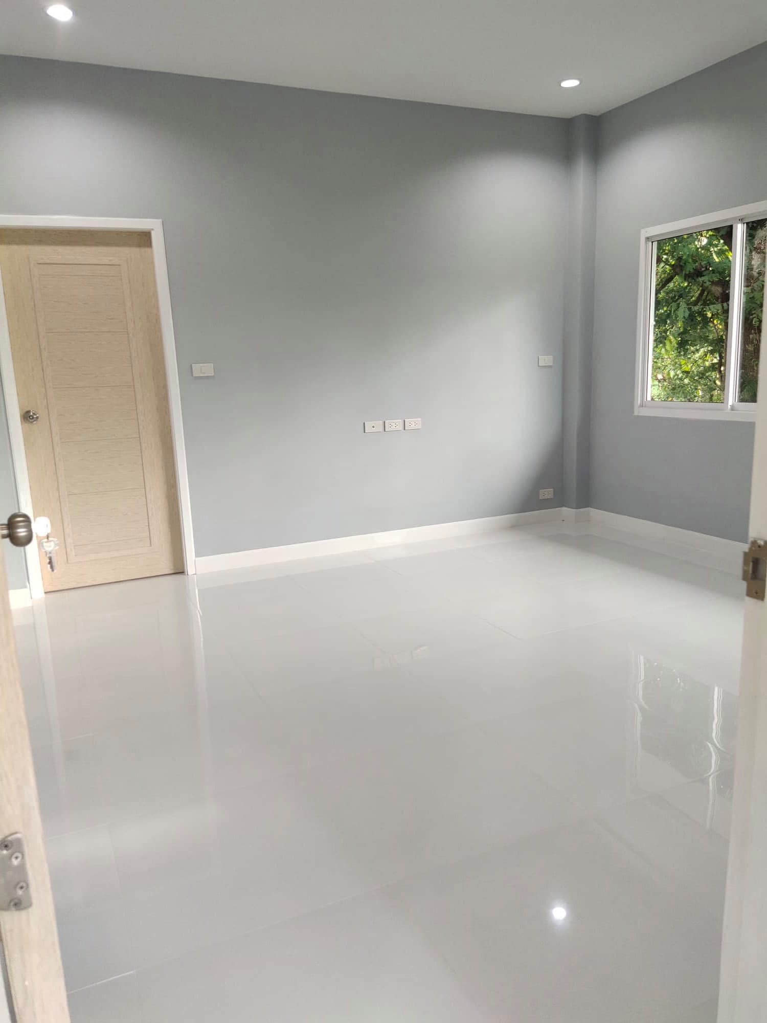 บ้านชั้นเดียว หลังคาปั้นหยา 3 ห้องนอน 2 ห้องน้ำ สีเทาสว่างๆ