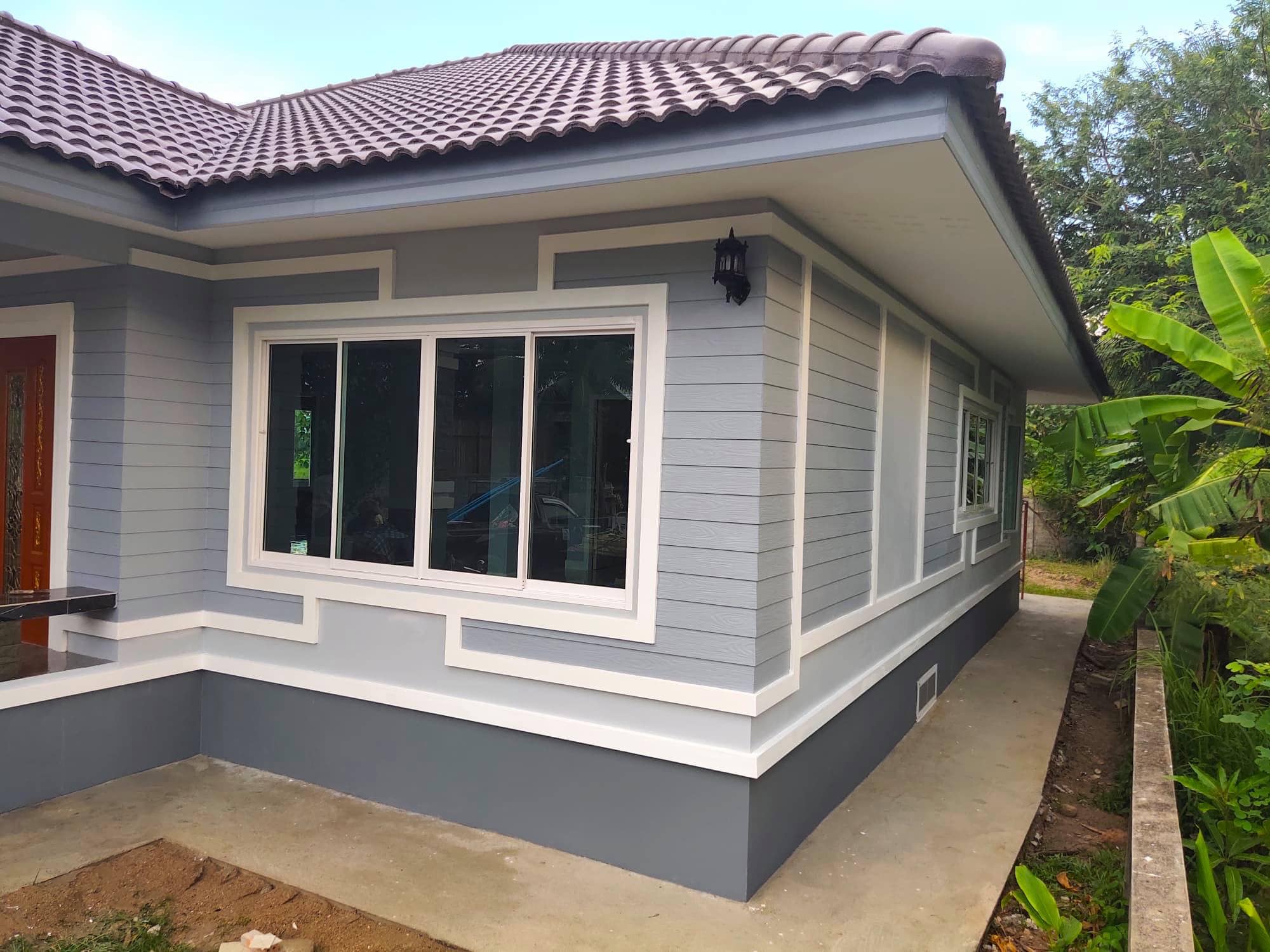 สวัสดีเพื่อนๆชาวเว็บ Property2share ทุกท่านครับ ผลงานที่ผมจะนำเสนอเพื่อนๆวันนี้จะเป็นบ้านชั้นเดียว สไตล์คอนเทมโพลารี่ หลังคาทรงปั้นหยา 3 ห้องนอน 3 ห้องน้ำ ตกแต่งสีโทนสีเทาฟ้าสดใส ซึ่งเป็นผลงานการออกแบบจากทางเพจ สร้างบ้านเชียงราย พะเยา เชียงใหม่ ลำพูน ลำปาง โดยสิงห์สยาม พาน โดยผลงานบ้านหลังนี้ประกอบด้วยรายละเอียดดังนี้ครับ