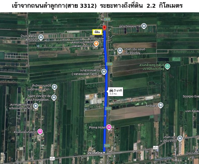 ขายกิจการเฟอร์นิเจอร์ ติดถนนทางหลวงชนบท ปท.3012 เนื้อที่ 33-3-35 ไร่ แขวงพืชอุดม เขตลำลูกกา จังหวัดปทุมธานี รายละเอียดที่ดิน เนื้อที่ 33-3-35 ไร่ ไร่ละ 3,694,400 บาท ทั้งหมด 13,535 ตารางวา ตารางวาละ 9,236 บาท หน้ากว้างที่ดิน 35 เมตร ลึก 1,376 เมตร พื้นที่สีเขียว กิจการยังดำเนินการได้อยู่ *** บริษัททำเฟอร์นิเจอร์ *** *** สิ่งปลูกสร้างในที่ดิน *** - อาคารสำนักงาน 2 ชั้น พร้อมโรงงานชั้นเดียว - อาคารสโตร์ชั้นเดียว - บ้านพักอาศัยชั้นเดียว - โรงจอดรถชั้นเดียว – ศาลาริมน้ำ - ศาลาพักผ่อน 1 – 2 บ้านพักคนงาน - บ้านน็อกดาวน์ชั้นเดียว - อาคารเก็บของชั้นเดียว - บ่อน้ำ 2 บ่อ ที่ดินเข้า - ออก ได้ 2 ทาง - เข้าจากถนนลำลูกกา (สาย 3312) ระยะทางถึงที่ดิน 2.2 กิโลเมตร - เข้าจากถนนรังสิต-นครนายก ระยะทางถึงที่ดิน 11 กิโลเมตร
