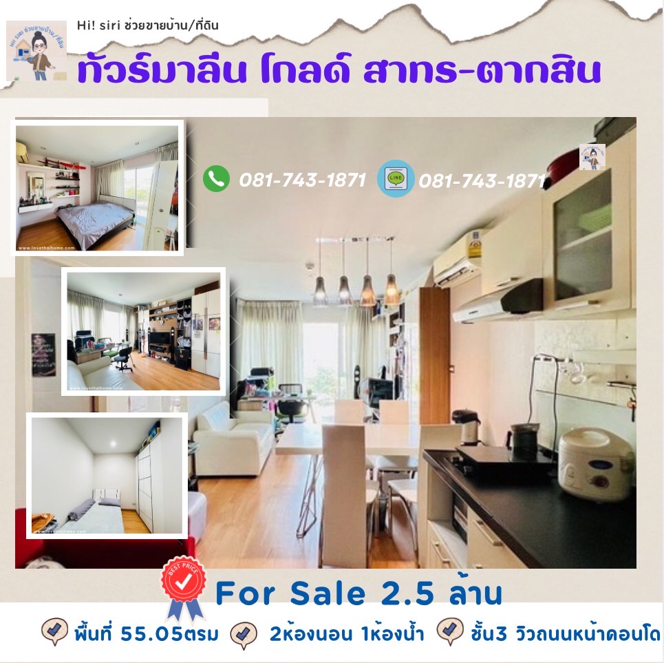 ขายคอนโด ทัวร์มาลีน โกลด์ สาทร-ตากสิน ซ.เจริญนคร14 พื้นที่ 55 ตรม. 2 ห้องนอน ใกล้ BTS กรุงธนบุรี,I CON SIAM ขายต่ำกว่าราคาประเมิน ถูกที่สุด ถูกกว่าขนาดห้องนอนเดียว