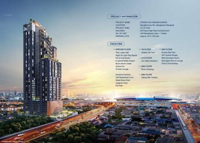 ขายดาวน์ขาดทุนคอนโด Origin Play บางขุนนท์ ทริปเปิ้ล สเตชั่น ห้อง DUO space 2 ชั้น