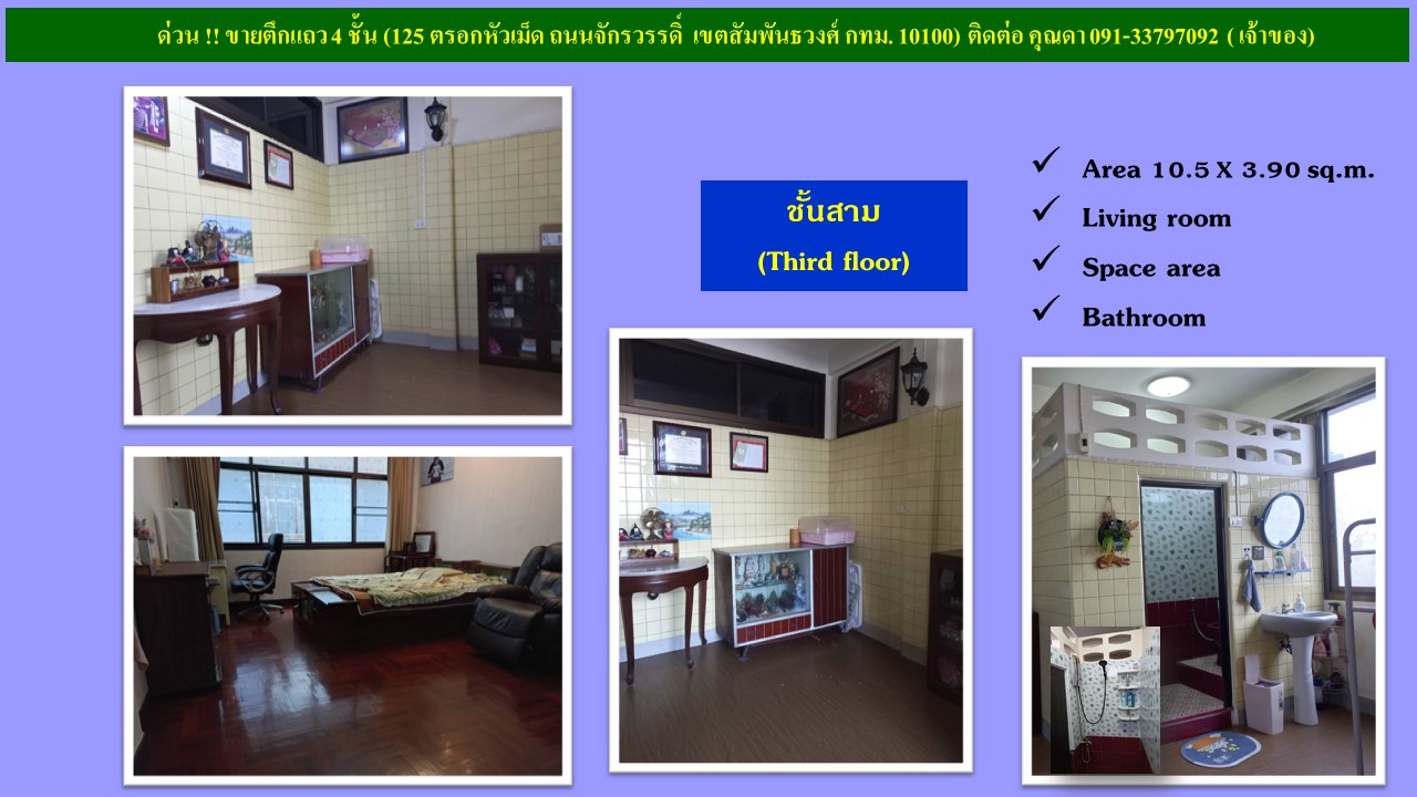 ขายด่วนตึกแถว 4 ชั้น กลางย่านธุรกิจ ใกล้เวิ้งนครเกษม-สำเพ็ง-พาหุรัด-คลองโอ่งอ่าง- เยาวราช (เจ้าของขายเอง)