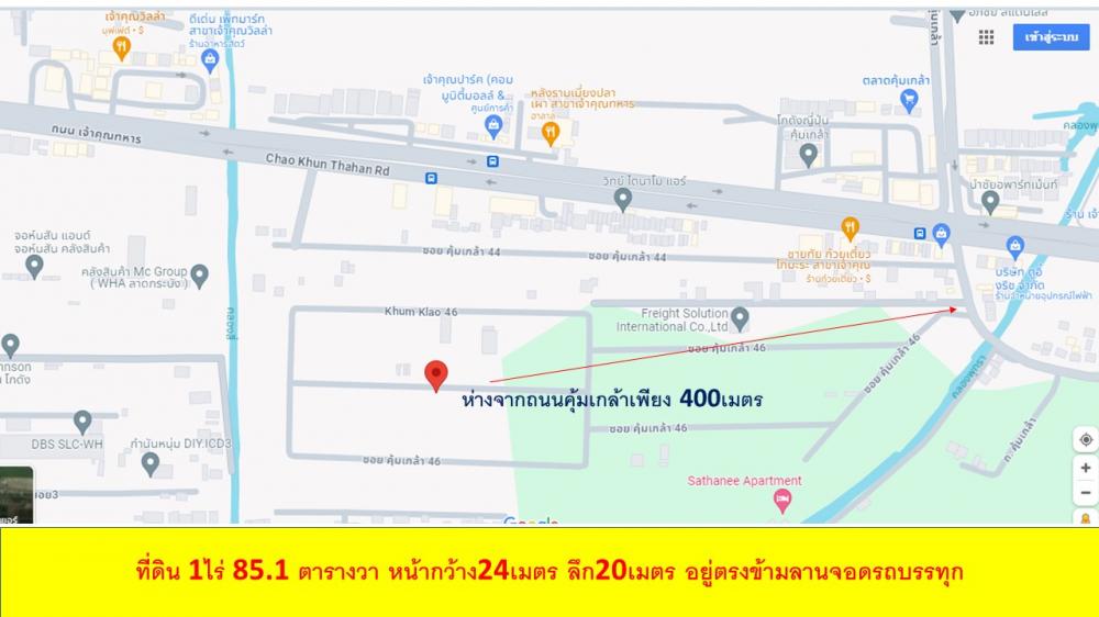 ขายด่วนที่สุด ที่ดินเปล่า 1ไร่85.1 ตารางวา ซอยคุ้มเกล้า46 ที่พร้อมใช้งาน ใกล้โรงเรียนเทพศิรินทร์ร่มเกล้า ยื่นกู้ฟรี