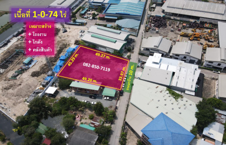 ขายถูก! ที่ดินถนนแพรกษา อ.เมืองสมุทรปราการ (ผังสีม่วง : Zone อุตสาหกรรม และคลังสินค้า) 1-0-74 ไร่ ถนนกว้าง 10-12 m. รถบรรทุกสัญจรสะดวก