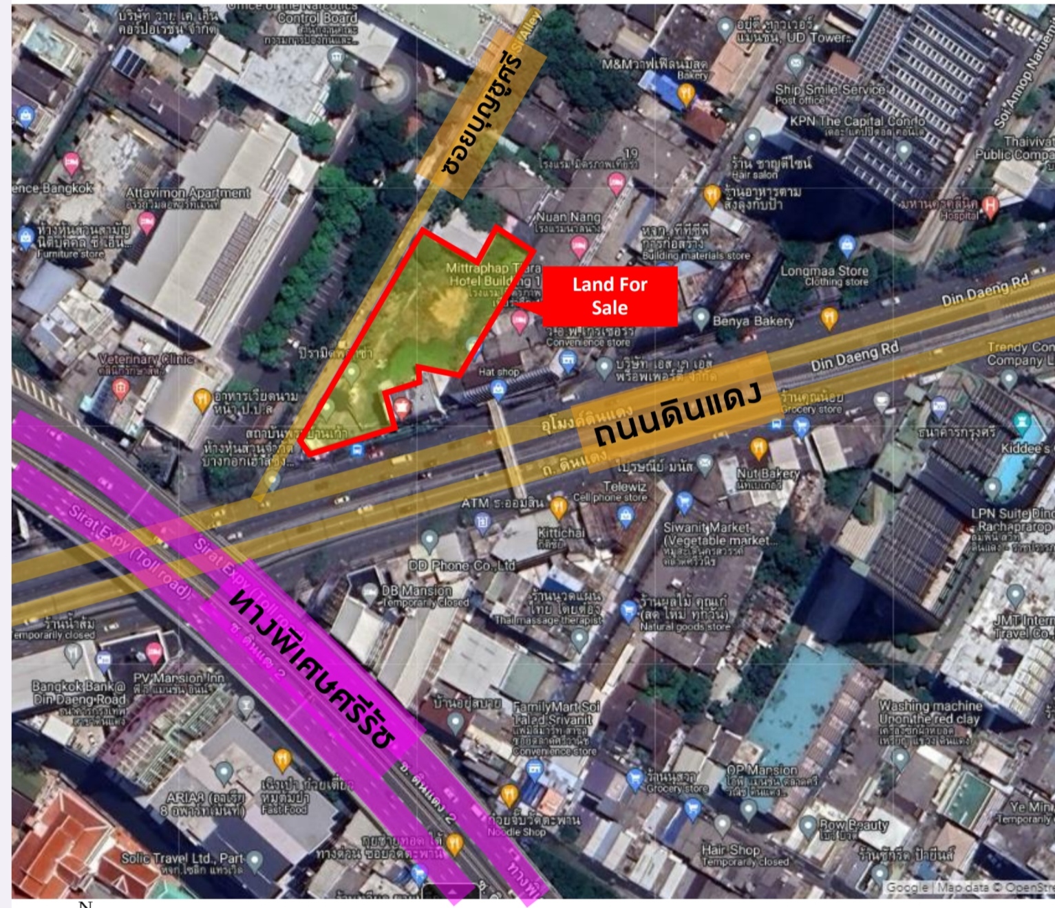 ขายที่ดินติดถนนดินแดงเขตพญาไทกรุงเทพฯปากซอยบุญชูศรี ขนาด 1-0-81 ไร่