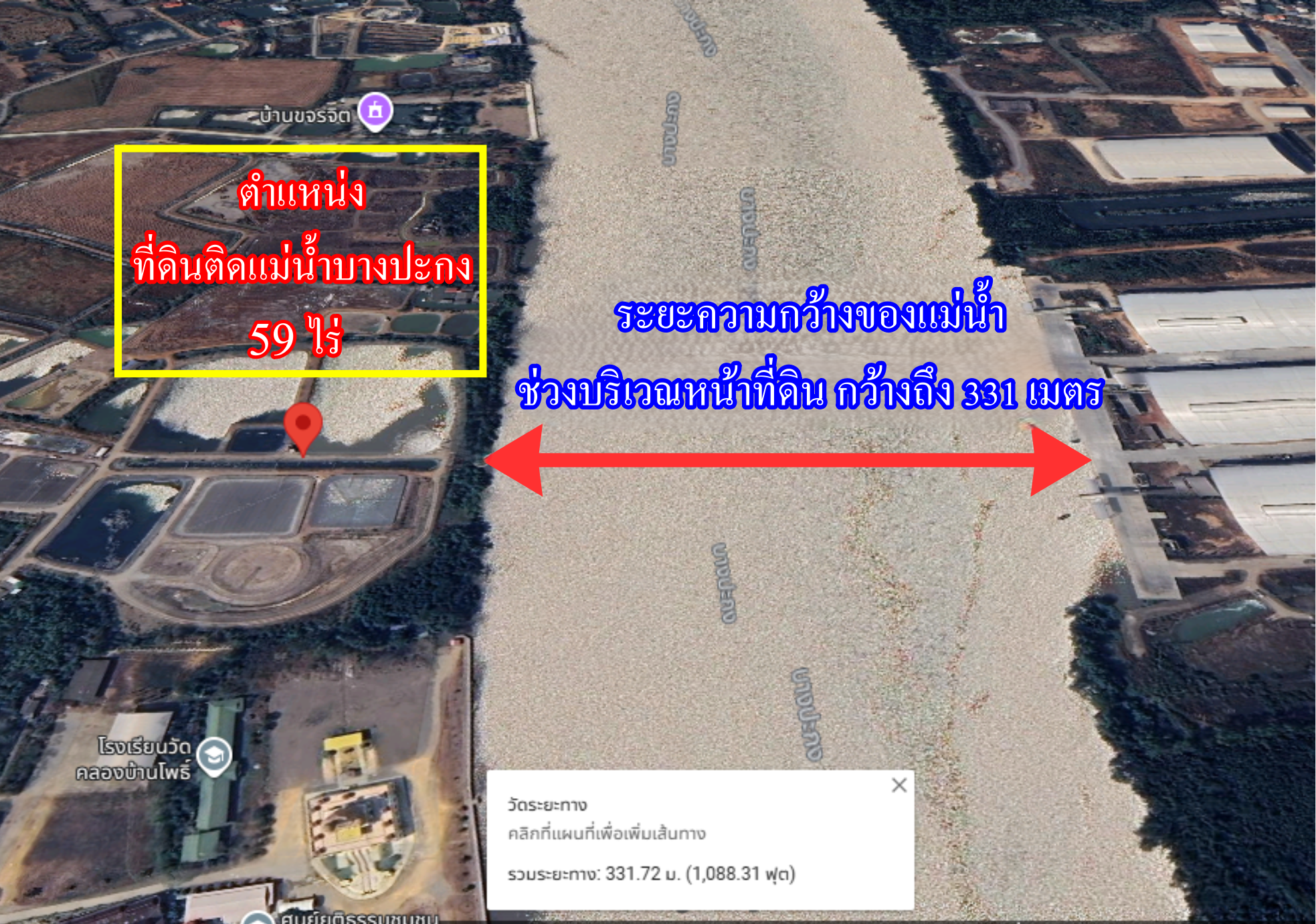ขายที่ดินติดแม่น้ำบางปะกง 59 ไร่ 1 งาน 55.9 ตรว. ที่ดินติดถนนสาธารณะ ชื่อถนนทางหลวง รพช.สาย บ้านโพธิ์ - บางหัก ถนนสาธารณะสายนี้ กว้าง 8 เมตร เป็นถนนลาดยาง ที่ดินมีหน้ากว้างติดถนนสาธารณะ 418 เมตร และมีหน้ากว้างติดแม่น้ำบางปะกง ถึง 285 เมตร ส่วนด้านข้างติดลำรางสาธารณะ มีสาธารณูปโภค ประปาภูมิภาค ไฟฟ้าสามเฟส ผ่านหน้าที่ดินพร้อมใช้ ตั้งอยู่คนละฝั่งแม่น้ำกับ ท่าเรือบ้านโพธิ์ ที่ดินแปลงนี้จัดอยู่ในผังสีเขียวทะแยงฟ้า ปัจจุบันเป็นบ่อเลี้ยงกุ้ง การเดินทางสามารถเชื่อมต่อเข้าสู่ถนนทางหลวงหมายเลข 3304 (3122) บ้านโพธิ์-แปลงยาว ด้วยระยะทาง 2.5 กิโลเมตร และสามารถเชื่อมต่อเข้าสู่ถนนเลียบมอเตอร์เวย์ 3702 ประมาณ 10 กิโลเมตร ที่ดินอยู่ในฝั่งน้ำเซาะ เหมาะกับการทำท่าเรือ ,ทำฟาร์ม อุตสาหกรรมสัตว์น้ำ หรือ บ้านพักคนชรา สถานที่สำคัญใกล้เคียง แปลงนี้ 1.อยู่ติดกับวัดบ้านโพธิ์ (อุทยานหลวงปู่ทวด) 2. โรงงานโตโยต้าบ้านโพธิ์ 8 กม. 3. ที่ว่าการอ.บ้านโพธิ์ 2.5 กม. 4. นิคมอมตะพานทองเฟสใหม่ 9 กม. 5. โรงงาน NHK บ้านโพธิ์ 3.5 กม. 6. นิคมอุตสาหกรรมบีพี 8 กม. ราคาไร่ละ 2.5 ล้านบาท (ราคารวมทั้งแปลง 148,474,375 บาท ) ค่าโอนกรรมสิทธิ ผู้ขายออกให้ทั้งหมด **สนใจดูที่ดินจริง รบกวนนัดล่วงหน้าอย่างน้อย 1 วันค่ะ** ติดต่อ ภญ.เทเรซา สิทธิพล โทร.(ไลน์) 081-3305497, โทร.(ไลน์) 061-5765520 เรียนจบธุรกิจที่ดินจาก ม.ธรรมศาสตร์ รู้กฎหมายที่ดินเป็นอย่างดี รับเหมาถมดิน รับจำนอง ขายฝาก ช่องทางการติดตาม…. Facebook Fanpage , TikTok , Youtube : คนจริงใจ ขายบ้านและที่ดิน #ที่ติดแม่น้ำบางปะกง #ที่ดินฉะเชิงเทรา #ที่ดินบ้านโพธิ์