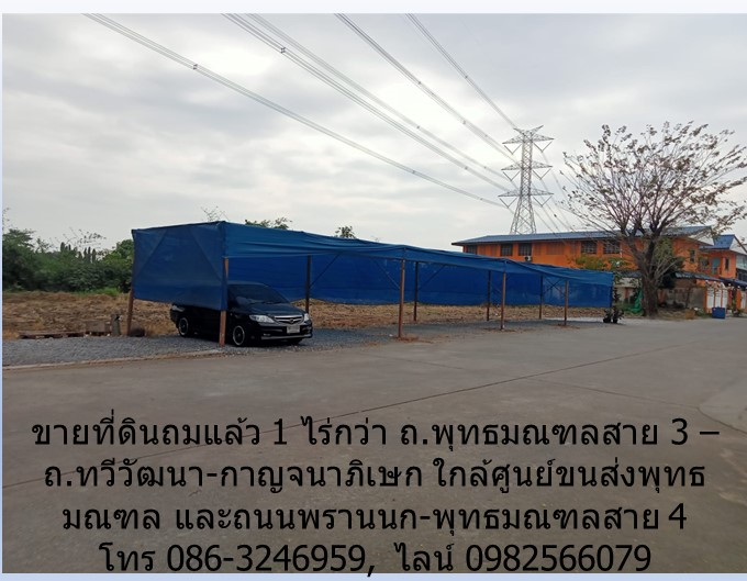 ขายที่ดินถมแล้ว 1 ไร่กว่า ถ.พุทธมณฑลสาย 3 -ถ.ทวีวัฒนา-กาญจนาภิเษก ใกล้ศูนย์ขนส่งพุทธมณฑล ,ถนนพรานนก-พุทธมณฑลสาย 4 1.ที่ตั้ง ถ.พุทธมณฑลสาย 3 -ถ.ทวีวัฒนา-กาญจนาภิเษก (ซอยยูเนี่ยน) แขวงทวีวัฒนา เขตทวีวัฒนา กรุงเทพมหานคร 10170 ใกล้ ศูนย์ขนส่งย่านถนนพุทธมณฑลสาย 3 ใกล้ถนนตัดใหม่ ถนนพรานนก-พุทธมณฑลสาย 4, ถนนพุทธมณฑล สาย 2,3,4, ถนนบรมราชชนนี, ถนนอุทยาน, ถนนเพชรเกษม, ถนนเลียบคลองทวีวัฒนา ใกล้ ศูนย์กีฬาราชดำเนินพุทธมณฑล, บิ๊กซีเพชรเกษม 2, โฮมโปร ใกล้ สำนักงานเขตทวีวัฒนา, โรงพยาบาลราชพิพัฒน์ 2.พื้นที่ 572 วา กว้าง*ยาวประมาณ 77*23 ม. 3. รายละเอียด : ที่ดินถมแล้ว รูปแปลงสี่เหลี่ยมผืนผ้า ด้านหลังที่ดิน มีติดแนวของสายไฟฟ้าประมาณ 20 เมตร ที่ดินเหมาะสร้าง โกดัง ศูนย์กระจายสินค้า กระจายสินคัา อพาร์ทเม้นท์ ที่พักอาศัย 4.ราคาขาย 22880000 บาท วาละ 40000 บาท ค่าโอนคนละครึ่ง Home Services โทร 086-3246959, ไลน์ 0982566079, toyou88@gmail.com Home Services : ที่ปรึกษาและตัวแทนขายอสังหาริมทรัพย์ - รับฝากขาย/รับจัดหาผู้เช่า บ้าน ทฮ. ตึกแถว office ร้านค้า ที่ดิน โกดัง โรงงาน อื่นๆ - ย่าน : นครปฐม พุทธมณฑล, ศาลายา, ปิ่นเกล้า, กาญจนาภิเษก, บรมราชชนนี, นนทบุรี ราชพฤกษ์, นครอินทร์, บางบัวทอง ปทุมธานี เป็นต้น - ทุกราคา Land for sale, 1 rai up, Phudhamonthon Sai 3 - Thawi Watthana - Kanchanaphisek Rd Near Phudhamonthon Transport Center, Pran Nok - Phutthamonthon Sai 4 Rd