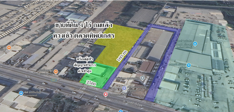 List No.92922 รายละเอียด - ขนาดที่ดิน 4 ไร่ (1,600 ตารางวา) - ผู้เช่า พร้อมผู้เช่าระยะยาว สัญญาถึง พ.ศ. 2577 - ผังเมือง พื้นที่สีเหลือง - ทำเลดีเยี่ยม - ติดถนนใหญ่ หน้ากว้างติดถนนหลัก 25 เมตร - ทำเลทองทางเข้าตลาด ติดถนนทางเข้า ตลาดเกสร ศรีวารีน้อย หน้ากว้าง 160 เมตร (เป็นศูนย์กลางการค้าและชุมชน) - ผังเมืองสีเหลือง รองรับการพัฒนาได้หลากหลาย ทั้งเชิงพาณิชย์ ที่พักอาศัย และโครงการบริการ ประเภทการพัฒนาที่แนะนำ วัตถุประสงค์หลัก เชิงพาณิชย์/สำนักงาน อาคารพาณิชย์, สำนักงานขนาดกลาง, โชว์รูม, โครงการบริการ, ร้านสะดวกซื้อ (7-Eleven/Lotus Go Fresh), คลินิก/ศูนย์สุขภาพ ที่พักอาศัย/โรงแรม โครงการหมู่บ้านจัดสรร/บ้านเดี่ยวระดับกลาง-บน, ทาวน์โฮม/โฮมออฟฟิศ, โรงแรม/เซอร์วิสอพาร์ตเมนต์ขนาดเล็ก-กลาง, ที่พักพนักงาน การศึกษา/บริการอื่นๆ สถาบันการศึกษา/สถานรับเลี้ยงเด็ก, โกดังเก็บของขนาดเล็ก Mixed-Use โครงการพัฒนาแบบผสมผสานขนาดเล็ก (ที่พัก + พาณิชย์เบา) สถานที่ตั้งและพื้นที่ใกล้เคียง (Prime Location) - พิกัดบางนา-ตราด กม. 21 (เข้าถนนศรีวารีน้อยไปเพียง 4 กม.) ใกล้แหล่งชุมชน/การศึกษา - ห่างจาก มหาวิทยาลัยหัวเฉียวฯ เพียง 4.1 กม. - ห่างจาก มหาวิทยาลัยอัสสัมชัญ (ABAC) 16.2 กม. ใกล้สนามบิน/โรงพยาบาล - ห่างจาก สนามบินสุวรรณภูมิ เพียง 15.5 กม. - ห่างจาก โรงพยาบาลบางพลี เพียง 1.2 กม. ตำแหน่งที่ตั้ง https://maps.app.goo.gl/zZkdJqqCN6rn8FFX8 *** ราคาขายรวม 86,400,000 บาท (ต่อรองได้) *** ราคาต่อตารางวา [คำนวณ: 86,400,000 / 1600 = 54,000] 54,000 บาท/ตารางวา ติดต่อ Estate corner Agency โทร. 097-918-4244 Line Id @estatecorner E-mail ecestatecorner99@gmail.com Estate corner Agency รับฝาก ซื้อ-ขาย อสังหาริมทรัพย์ทุกประเภท ฟรีค่าโฆษณายินดีจัดหาสินเชื่อให้ฟรี EstateCornerAgency.com