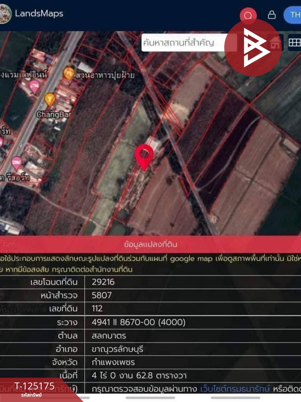 ขายที่ดินพร้อมโกดัง เนื้อที่ 4 ไร่ 62.8 ตร.วา ขาณุวรลักษบุรี กำแพงเพชร