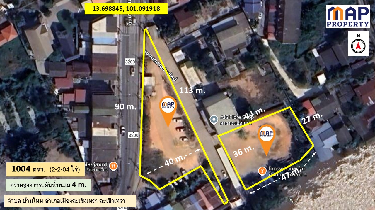 ขายที่ดินริมน้ำ บางปะกง 1004 ตารางวา กลางเมือง ฉะเชิงเทรา