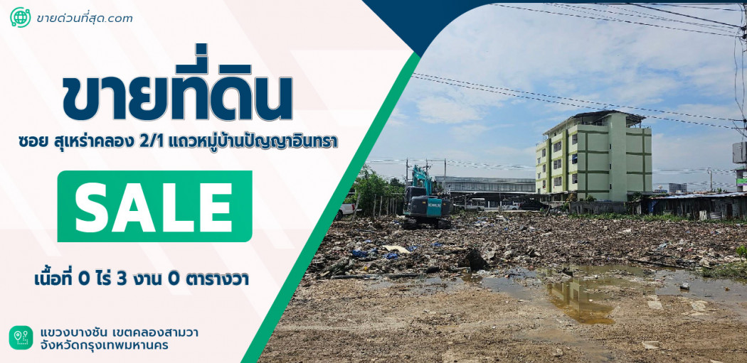 ขายที่ดินเปล่าในซอย สุเหร่าคลอง 2-1 เนื้อที่ 300 ตร.ว.