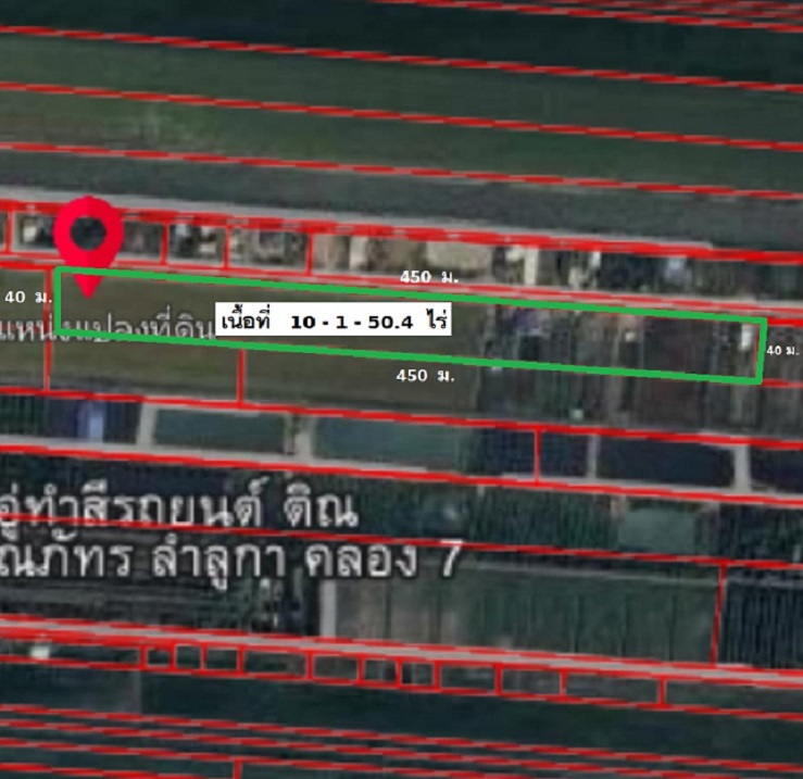 ขายที่ดินเปล่า ซอยเกษตรสมบุญ คลอง 10 เนื้อที่ 10-1-50.4 ไร่ ถนนทางหลวงชนบท ปท.3032 ตำบลบึงทองหลาง อำเภอลำลูกกา จังหวัดปทุมธานี