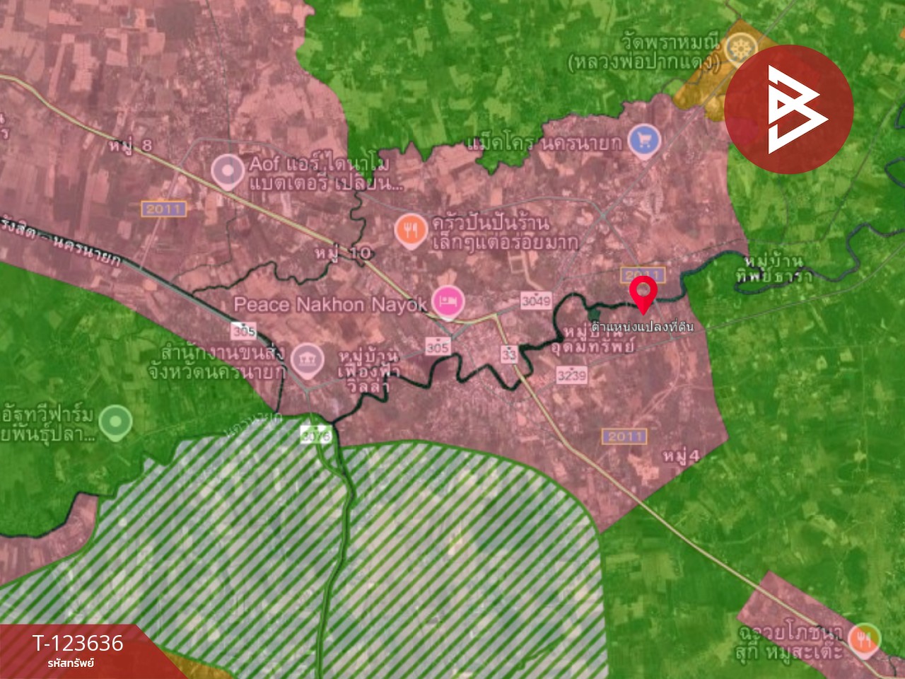 ขายที่ดินเปล่า ติดแม่น้ำ 4 ไร่ 34.6 ตร.วา บ้านใหญ่ นครนายก