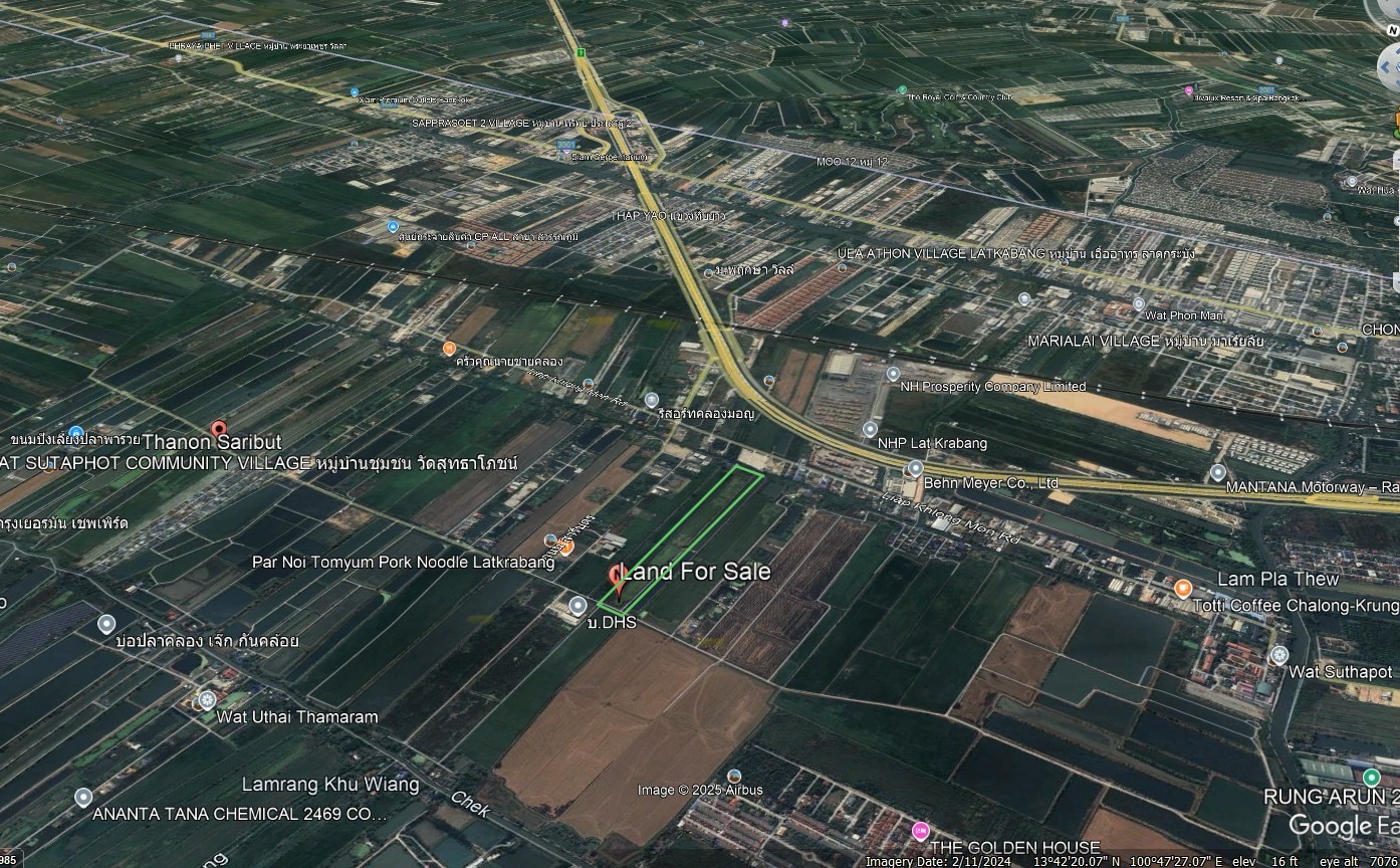 ขายที่ดินเปล่า เนื้อที่ 23-1-96 ไร่ ถนนสารีบุตร ,ลาดกระบัง ใกล้ถนนมอเตอร์เวย์ กรุงเทพ-ชลบุรี