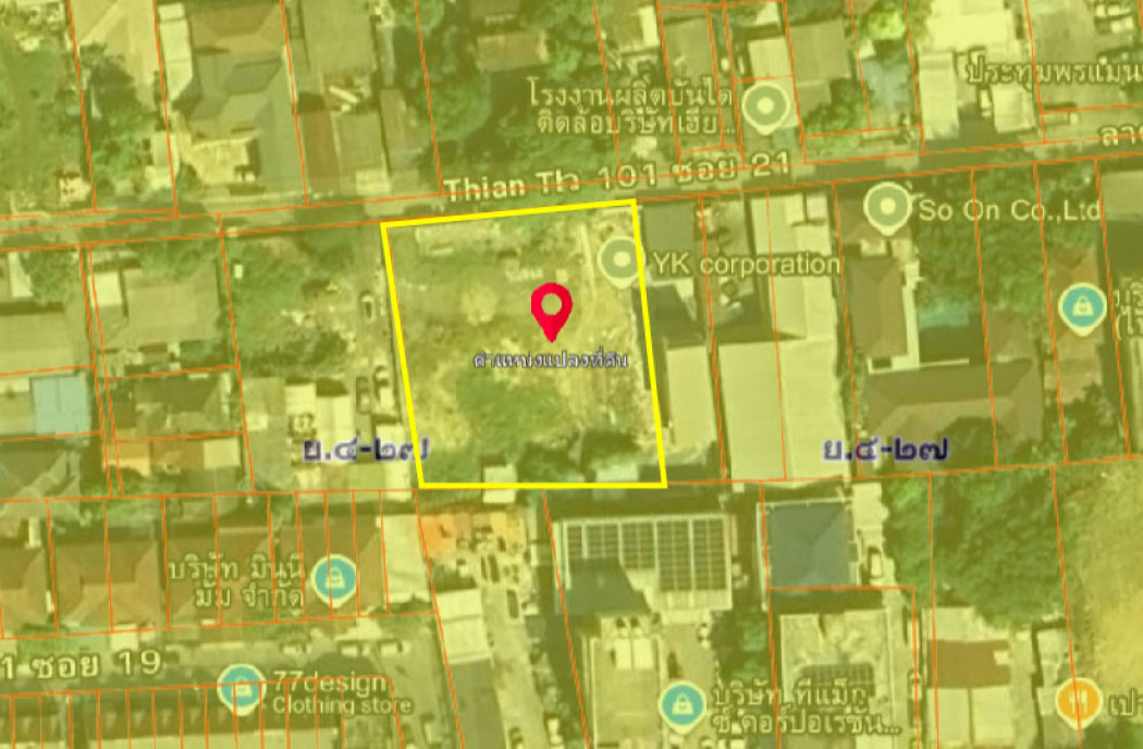 ขายที่ดินเปล่า เนื้อที่ 380 ตร.ว. ซอยลาดพร้าว 101 แยก 21 ใกล้ เดอะมอลล์ บางกะปิ