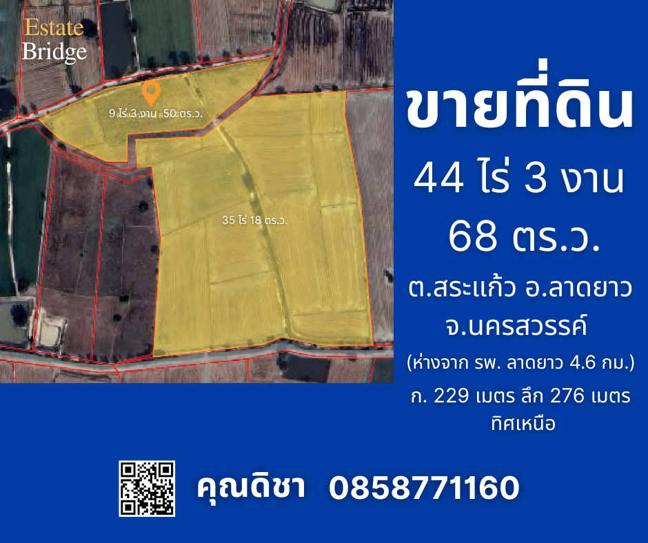 ขายที่ดินเปล่า 44 ไร่ 3 งาน 68 ตารางวาต.สระแก้ว อ.ลาดยาว จ.นครสวรรค์