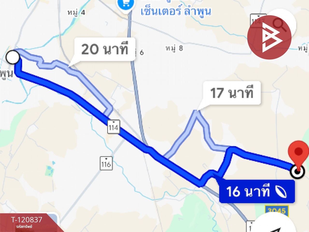 ที่ดิน : ศรีบัวบาน ลำพูน ที่ตั้ง : ต.ศรีบัวบาน อ.เมืองลำพูน จ.ลำพูน รหัสทรัพย์ : T-120837 ประเภท : ที่ดิน เนื้อที่ : 9 ไร่ 2 งาน 45.5 ตารางวา รายละเอียดเพิ่มเติม : สามารถปลูกสวนลำไยได้ ระยะทางจากศาลากลาง 16 นาที 11 กิโลเมตร อ่างเก็บน้ำศรีบัวบาล 3 นาที 1.8 กิโลเมตร สวนลำไยพรประสบ 4 นาที 2.6 กิโลเมตร สำนักงานขนส่งจังหวัดลำพูน 15 นาที 8.8 กิโลเมตร ราคา : 7,691,000 บาท ลิงค์แผนที่ : https://maps.google.com/?q=18.54726917,99.09269852 **เรามีบริการจัดสินเชื่อให้ฟรี พร้อมยินดีให้คำปรึกษา มีให้เลือกทุกธนาคาร** **พร้อมอัตราดอกเบี้ยพิเศษ และ วงเงินสูงสุด 90-100% ของราคาประเมิน** สนใจสอบถามข้อมูลเพิ่มเติม หรือ นัดชมบ้านได้ที่ Tel : 0861735551 อิ๋ว (รหัสตัวแทน 6629) Line ID : 0861735551 Callcenter : 02-047-4282 สนใจดูทรัพย์อื่นๆ เพิ่มเติม มากกว่า 3,000 รายการ www.tb.co.th The Best Property Agent CO,.LTD. ผู้นำด้านธุรกิจนายหน้า ตัวแทนอสังหาริมทรัพย์ครบวงจร ด้วยความเป็นมืออาชีพ ใช้เทคโนโลยี และ นวัตกรรมที่สร้างสรรค์ เพื่อส่งมอบบริการที่ดีที่สุดเพื่อคุณ ให้บริการด้าน ซื้อ ขาย เช่า อสังหาริมทรัพย์