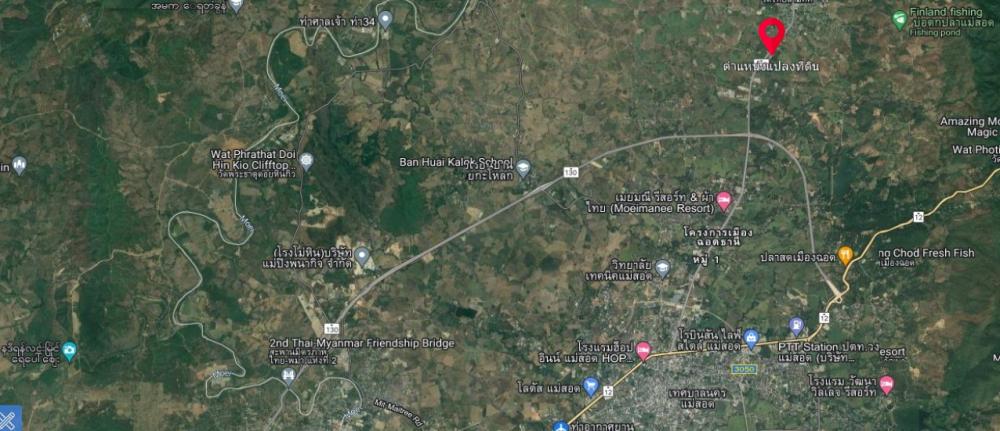 ขายที่ดินและโรงงานพร้อมสิ่งปลูกสร้าง 33ไร่ อ.แม่สอด จังหวัดตาก ติดทางหลวหมายเลข 105 ถนนใหญ่ 4 เลน ใกล้วงแหวน สะพานมิตรภาพ ไทย-พม่า แห่งที่ 2 ไร่ละ 4.5 ล้านบาท