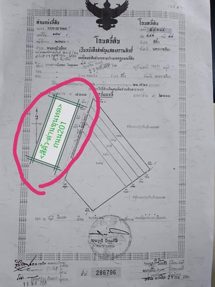 ขายที่ดินโฉนด 16ไร่ 21ตารางวา ติดทางหลวงแผ่นดินหมายเลข201ถนน 4เลน สีคิ้ว-ชัยภูมิ นครราชสีมา ไร่ละ 1,400,000บาท ขายที่ดินโฉนด 16ไร่ 21ตารางวา(เศษไม่คิด) สีคิ้วแบ่งขายได้ ติดถนนใหญ่สายหลัก โฉนดครุฑแดง นส.4จ. 16ไร่ ไร่ละ 1,400,000บาท แบ่งครึ่ง 8ไร่ได้ แยกโฉนดไว้แล้ว ราคายกแปลง 22,400,000 บาท ผู้ขายออกค่าโอนและภาษี. (ติดต่อ : Line ID : paul20net) ที่ดินอยู่ ติดทางหลวงแผ่นดิน ทล.201 ถนน 4เลน สีคิ้ว-ชัยภูมิ กม.ที่24 หน้ากว้าง 200เมตร กึ่งกลางระหว่างสีคิ้วกับด่านขุนทด เป็นที่ไร่พื้นที่สูง เจาะน้ำบาดาลไว้แล้วใช้ได้ตลอดปี ถมข้างหน้าไว้แล้วบางส่วน เหมาะกับทำปั๊มน้ำมันขนาดใหญ่ สร้างโรงงาน สร้างโกดังสินค้า ที่ดินอยู่ฝั่งขาเข้าสีคิ้ว ห่างจากตลาดสีคิ้ว 22กม. ห่างตลาดด่านขุนทด 18กม. ห่างถนนมิตรภาพ 24กม. ห่างจุดขึ้น-ลง M6 18กม. เจ้าของขายเอง ต่อรองหน้าแปลงเท่านั้น