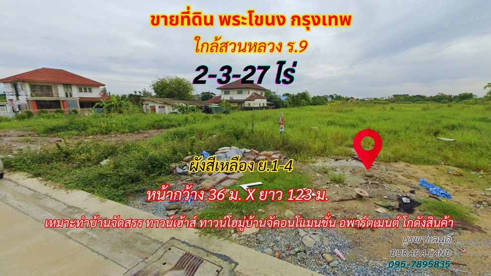 ขายที่ดิน กรุงเทพ พระโขนง 2-3-27 ไร่ ซอยร่มเย็น ใกล้สวนหลวง ร.9