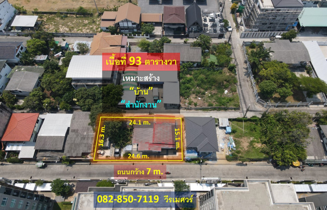 ขายที่ดิน ถนนสุขุมวิท ใกล้สถานีรถไฟฟ้า BTS (เหมาะสร้าง บ้าน และ สำนักงาน) 93 ตารางวา หน้ากว้าง 24.6 m. ยาว 16.3 m. ถนนกว้าง 7 m.