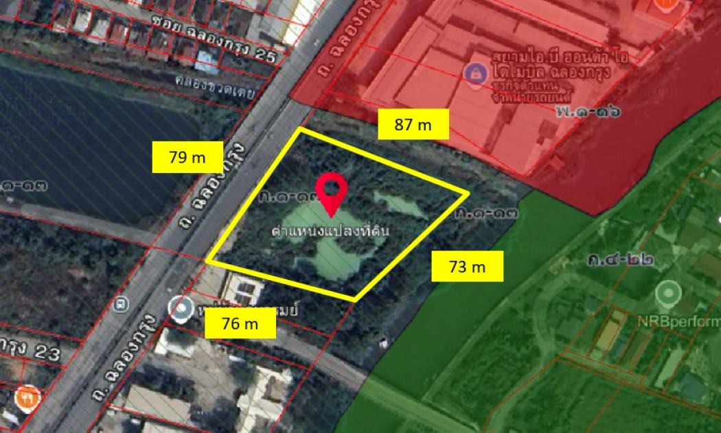 ขายที่ดิน ริมถนนใหญ่ฉลองกรุง เนื้อที่ 4 ไร่ 90 ตรว เหมาะทำธุรกิจ การค้า