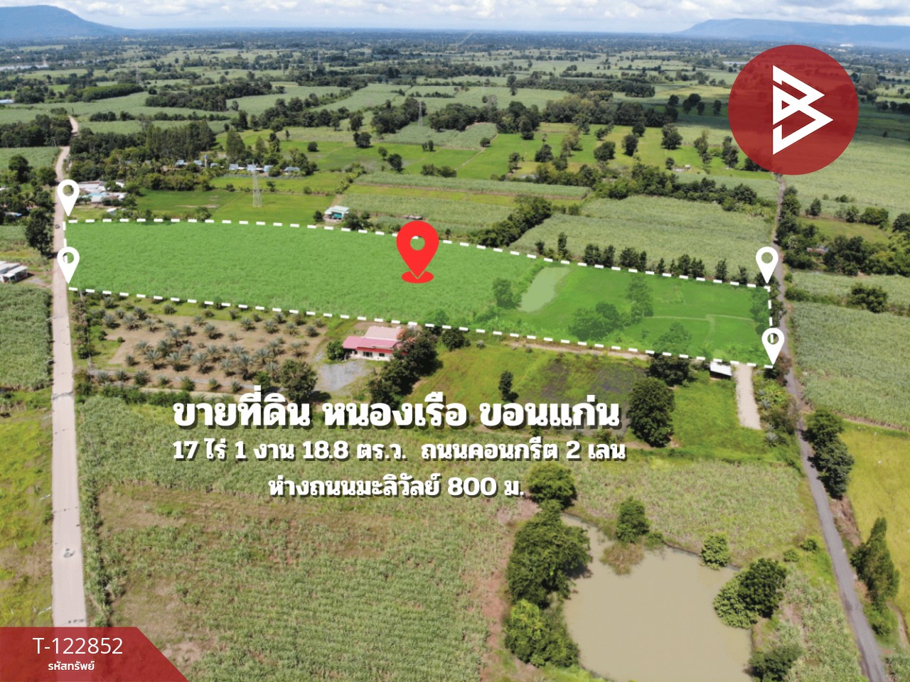 ขายที่ดิน เนื้อที่ 17 ไร่ 1 งาน 18.8 ตารางวา อ.หนองเรือ ขอนแก่น ทำเลดี