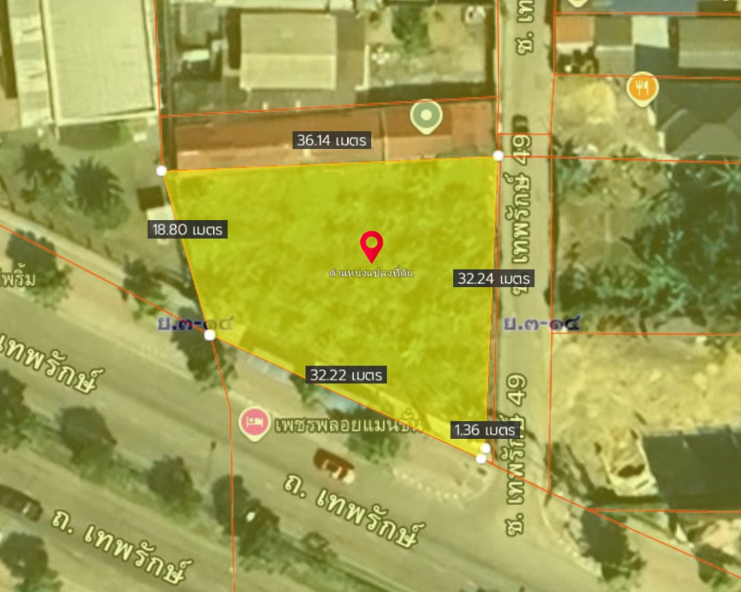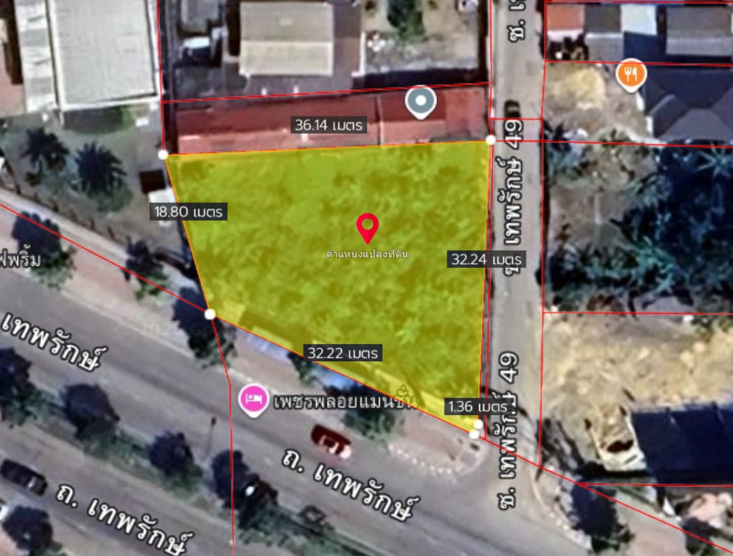 ขายที่ดิน เนื้อที่ 185 ตารางวา ซอยเทพรักษ์ 49 ติดถนนเทพรักษ์ และปั๊มเชลล์