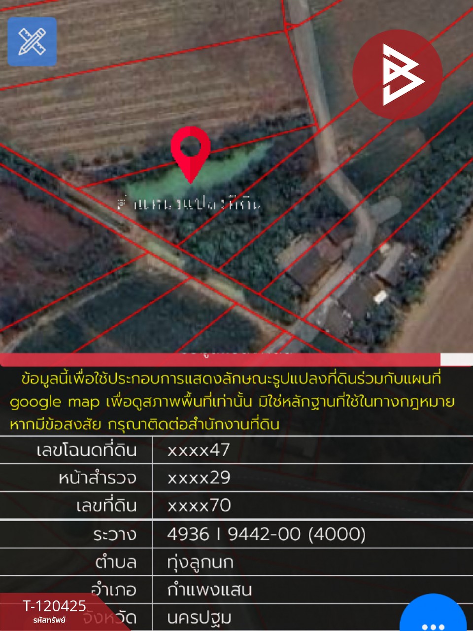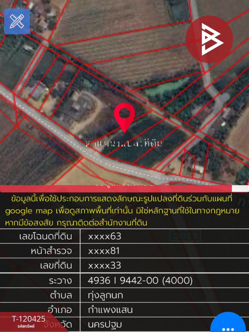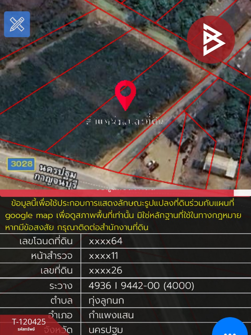 ที่ดิน : กำแพงแสน นครปฐม ที่ตั้ง : ต.ทุ่งลูกนก อ.กำแพงแสน จ.นครปฐม รหัสทรัพย์ : T-120425 ประเภท : ที่ดิน เนื้อที่ : 3 ไร่ 3 งาน 77.0 ตารางวา รายละเอียดเพิ่มเติม : หน้าที่ดินติดถนนหลัก 2 ด้าน ทำเลสวย สถานที่ใกล้เคียง โรงเรียนศาลาตึกวิทยา โรงนมหนองโพ (สนามแย้) ห่างจากตลาดห้วยกระบอก ปั๊มน้ำมัน ปตท.ห้วยกระบอก ราคา : 4,000,000 บาท **เรามีบริการจัดสินเชื่อให้ฟรี พร้อมยินดีให้คำปรึกษา มีให้เลือกทุกธนาคาร** **พร้อมอัตราดอกเบี้ยพิเศษ และ วงเงินสูงสุด 90-100% ของราคาประเมิน** สนใจสอบถามข้อมูลเพิ่มเติม หรือ นัดชมบ้านได้ที่ Tel : 0947936919 หยก (รหัสตัวแทน 6317) Line ID : 0832330789 Callcenter : 02-047-4282 สนใจดูทรัพย์อื่นๆ เพิ่มเติม มากกว่า 3,000 รายการ www.tb.co.th The Best Property Agent CO,.LTD. ผู้นำด้านธุรกิจนายหน้า ตัวแทนอสังหาริมทรัพย์ครบวงจร ด้วยความเป็นมืออาชีพ ใช้เทคโนโลยี และ นวัตกรรมที่สร้างสรรค์ เพื่อส่งมอบบริการที่ดีที่สุดเพื่อคุณ ให้บริการด้าน ซื้อ ขาย เช่า อสังหาริมทรัพย์