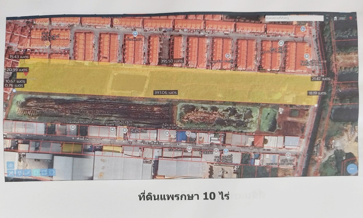 ที่ดิน 10 ไร่ (ผังสีเหลือง) ติดถนนซอยทับคล้าย ถนนเทพารักษ์ อ.เมืองสมุทรปราการ