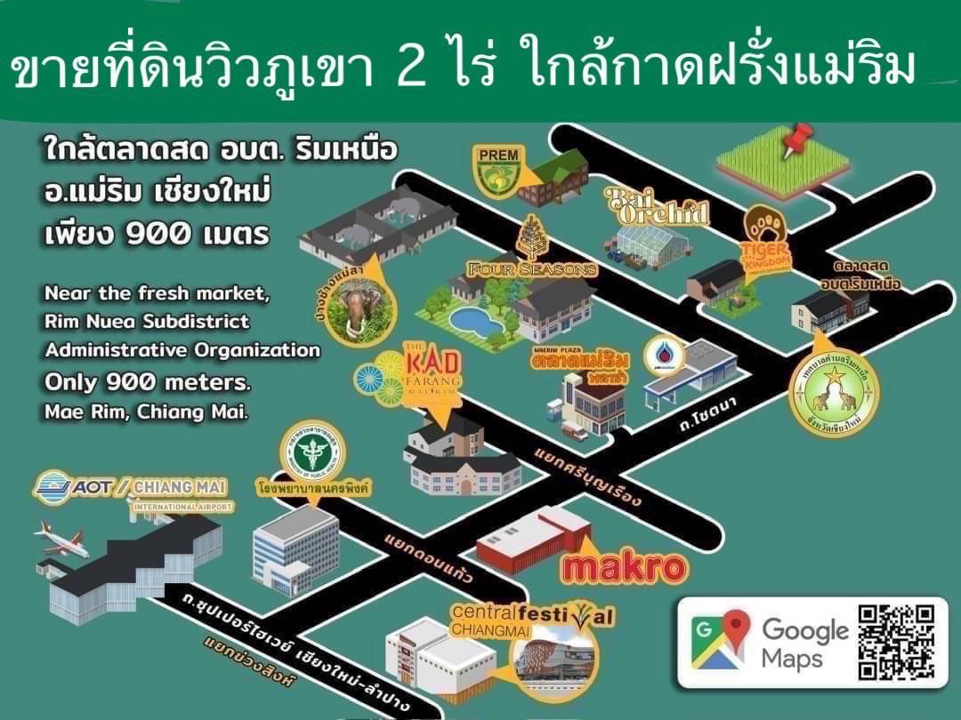 ขายที่ดิน 2-0-11 ไร่ ใกล้ตลาดสดริมเหนือและกาดฝรั่ง อ.แม่ริม เชียงใหม่ ราคา 7,299,000 บาท (9,000 บาท/ตร.ว.) ค่าโอนกรรมสิทธิ์ทุกอย่างฝ่ายละครึ่ง https://youtu.be/W76E9kcf4-k รายละเอียด -เนื้อที่ 2-0-11 ไร่ (811 ตร.ว.) -เอกสารสิทธิ์โฉนด -ติดทางสาธารณะ 2 ด้าน หน้าติดถนนลาดยาง กว้าง 54 เมตร ด้านหลัง 17.5 เมตร -น้ำประปา ไฟฟ้าอินเตอร์เน็ตถึง มีเพื่อนบ้านไม่เปลี่ยว -ใกล้ตลาดสดริมเหนือเพียง 950 เมตร -เหมาะกับการปลูกบ้านสวน บ้านพูลวิลลาพักอาศัยเองขายหรือปล่อยเช่า รองรับนักเรียนโรงเรียน นานาชาติเปรมฯ และนักท่องเที่ยว ใกล้แหล่งท่องเที่ยวมากมาย อาทิเช่น คุ้มเสือ, ปางช้าง, ฟาร์มกล้วยไม้ ใกล้ตลาดสด อบต. ริมเหนือ 3 นาที (900 เมตร) ใกล้โรงแรม Four Seasons 8 นาที (3.8 กม.) ใกล้แม่ริมพลาซ่า 8 นาที (3.2 กม.) ใกล้โรงเรียนนานาชาติเปรม 10 นาที (5.5 กม.) ใกล้แม็คโคร แม่ริม 14 นาที (5.8 กม.) จากตัวเมืองเชียงใหม่ประมาณ 20 นาที จากCentral Festival 30 นาที (21 กม.) จากสนามบินเชียงใหม่ 34 นาที (22 กม.) จากกาดฝรั่งแม่ริม 11 นาที (4.8 กม.) จากโรงพยาบาลนครพิงค์ 19 นาที (11 กม.) **พิกัด:ตำบลสันโป่ง อำเภอแม่ริม เชียงใหม่ Land for sale 2-0-11 rai near Rim Nuea fresh market and Kad Farang, Mae Rim, Chiang Mai. Price 7,299,000 baht (9,000 baht/sq.w.) details - Area 2-0-11 rai (811 sq.w.) - Title deed document - Adjacent to public roads on 2 sides, front next to paved road, width 54 meters, back 17.5 meters. - Tap water, electricity, internet available. There are no lonely neighbors. - Close to Rim Nuea Fresh Market, only 950 meters. - Suitable for growing a home or garden. Self-contained pool villa for sale or rent. Supports school students Prem International and tourists. Close to many tourist attractions such as Tiger Kingdom, Elephant Camp, orchid farm. Near the fresh market, Rim Nuea Subdistrict Administrative Organization 3 minutes (900 meters) Near Four Seasons Hotel 8 minutes (3.8 km.) Near Mae Rim Plaza 8 minutes (3.2 km.) Near Prem International School 10 minutes (5.5 km.) Near Makro Mae Rim 14 minutes (5.8 km.) 20 minutes from Chiang Mai city 30 minutes from Central Festival (21 km.) 34 minutes from Chiang Mai Airport (22 km.) 11 minutes from Kad Farang Mae Rim (4.8 km.) 19 minutes from Nakornping Hospital (11 km.) **Location:San Pong Subdistrict, Mae Rim District, Chiang Mai 待售土地,2-0-11 rai,靠近清迈 Mae Rim 区 Rim Nuea 生鲜市场和 Kad Farang。 价格 7,299,000 泰铢(9,000 泰铢/每平方米) 所有所有权转让费用减半。 细节 -面积 2-0-11 rai (811 平方米) - 产权契据文件 - 两侧紧邻公共道路,前面紧邻铺好的道路,宽度 54 米,后面 17.5 米。 - 提供自来水、电、互联网。没有孤独的邻居。 -靠近北缘生鲜市场,仅950米。 - 适合种植家庭或花园。独立泳池别墅出售或出租。 支持学校学生普雷姆国际和游客 靠近老虎王国、大象营、兰花农场等多个旅游景点。 靠近新鲜市场,街道行政机构,Rim Nuea,3分钟(900米) 邻近四季酒店 8 分钟(3.8 公里。) 靠近湄林广场 8 分钟(3.2 公里。) 近 Prem 国际学校 10 分钟(5.5 公里。) 近万客鲁湄林 14 分钟(5.8 公里。) 距清迈市区约20分钟车程。 距中央百货商场 30 分钟 (21 公里。) 距离清迈机场 34 分钟 (22 公里。) 距离 Kad Farang Mae Rim 11 分钟(4.8 公里。) 距离 Nakornping 医院 19 分钟(11 公里) **清迈湄林县San Pong街道 สนใจติดต่อ หทัยรัตน์ (นาย) 082-427-0643 LINE ID : nai0824270643 092-3647498 093-1878222 Email: hathairutjarusuraisin@gmail.com Facebook: https://facebook.com/Nai9properties Youtube: https://www.youtube.com/@Nai9properties