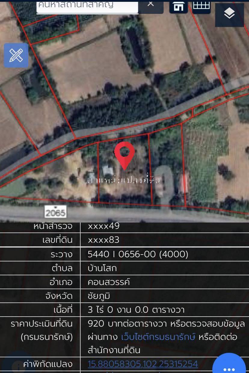 ขายที่ดิน 3 ไร่ ต.บ้านโสก อ.คอนสวรรค์ ชัยภมิ ติดถนนดำมีน้ำไฟขาย 1.2 ล้าน