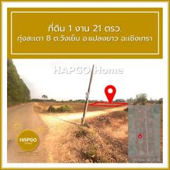 ขายที่ดิน 363,000 บาท (ตรว.ละ 3,000 บาท) เนื้อที่ 1 งาน 21 ตรว.(18.22 ม. x 26.91 ม.) เหมาะสร้างบ้าน บ้านพักคนงาน หรือโกดังขนาดย่อม ทุ่งสะเดา 8 ต.วังเย็น อ.แปลงยาว ฉะเชิงเทรา
