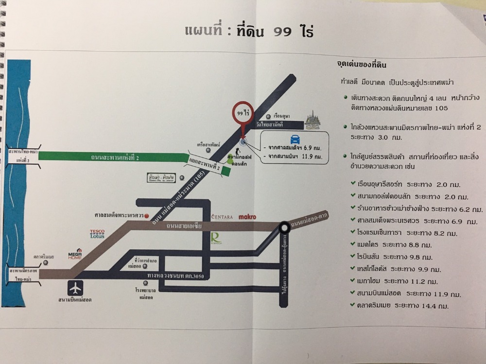 ติดทางหลวงแผ่นดินหมายเลข 105 ถนนใหญ่ 4 เลน ใกล้วงแหวนสะพานมิตรภาพ ไทย-พม่า แห่งที่ 2