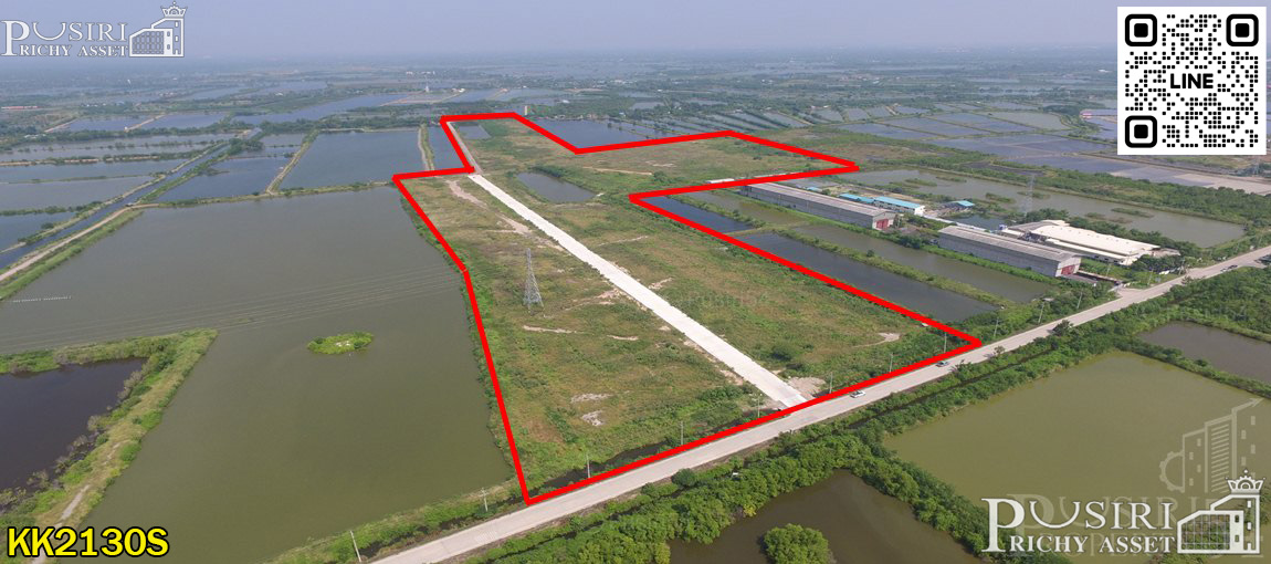 ขายที่สร้างโรงงาน 104 ไร่ ถมพร้อมใช้ ติดถนนคอนกรีต ผิวถนนกว้าง 12 เมตร ใกล้พระราม 2 - KK2130S