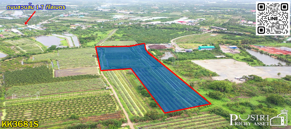 ขายที่ 31 ไร่ หน้ากว้างมาก 133 เมตร ราคาคุ้มสุดในตลาดเชื่อมต่อ หลายเส้นทาง ถนนสวนส้ม บางปลา และพระราม 2 - KK3681S