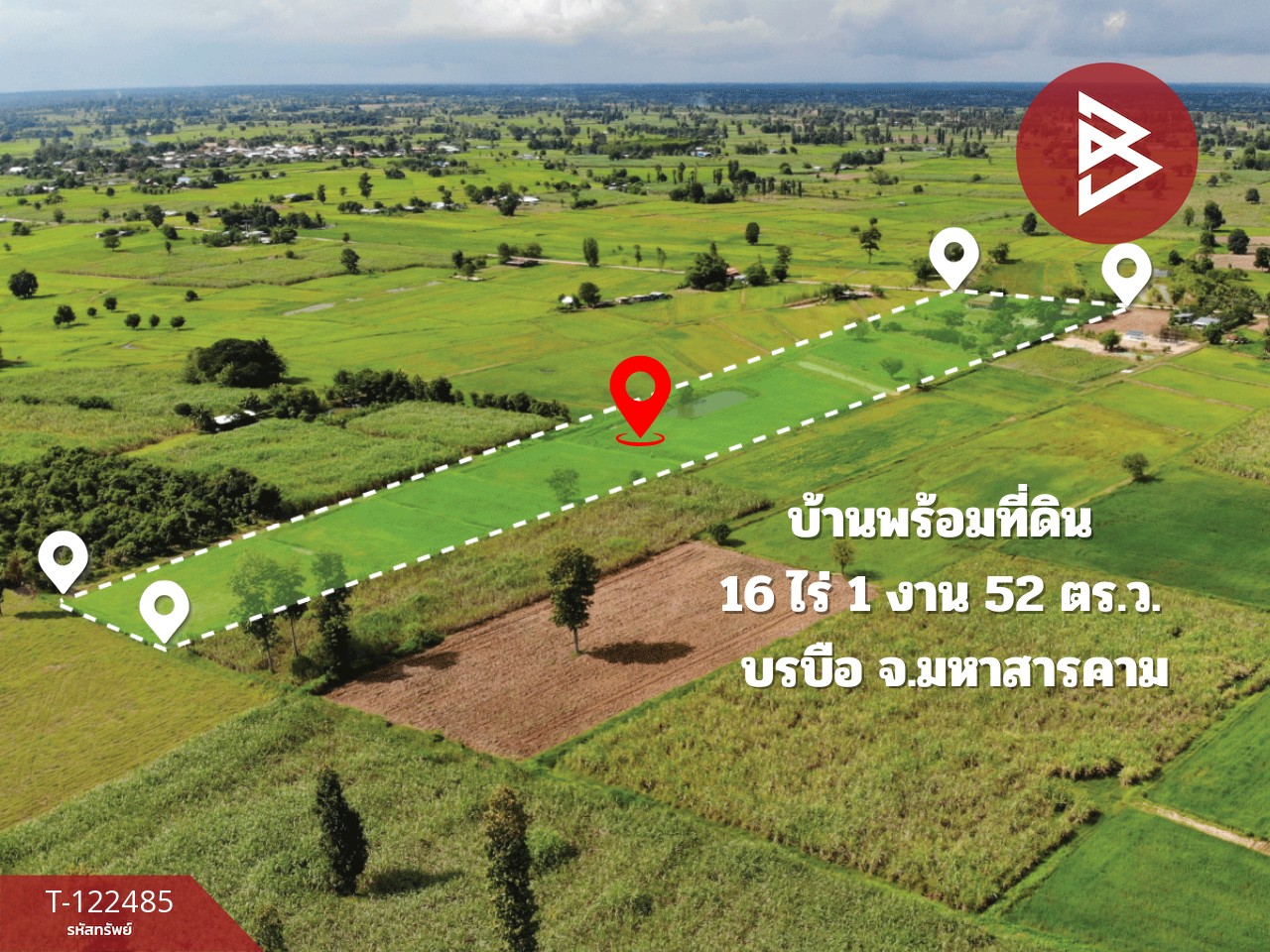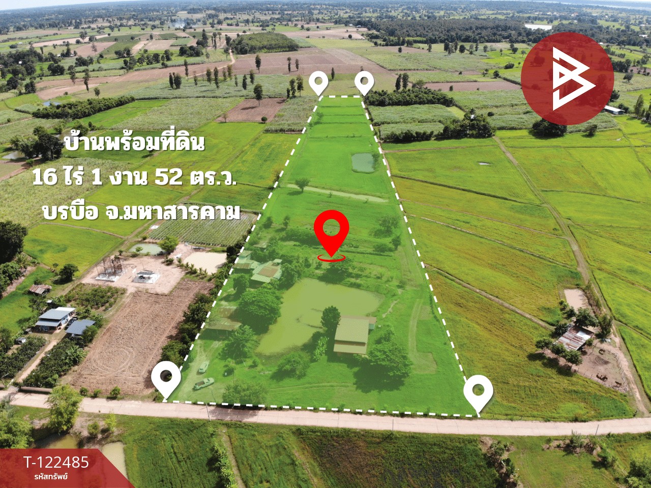 ขายบ้านเดี่ยวพร้อมที่ดิน เนื้อที่ 16 ไร่ 1 งาน 52 ตร.วา บรบือ มหาสารคาม