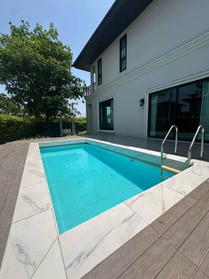 มีสระว่ายน้ำในบ้าน 18 ฟุต ลึก 1.2 เมตร ใกล้สวน มีความเป็นส่วนตัวสูง ซอยหน้าบ้านไม่มีบ้านตรงข้าม