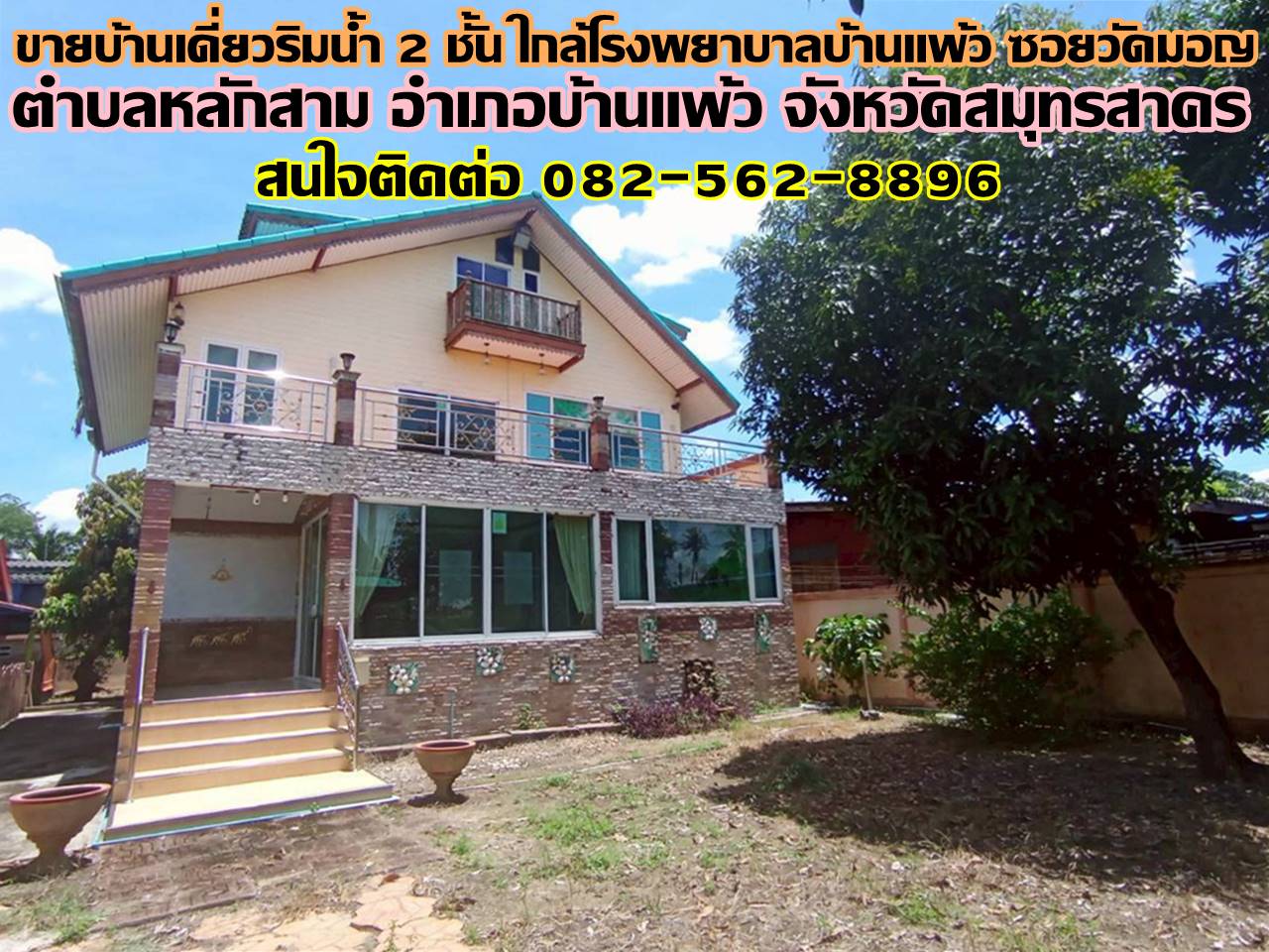 ขายบ้านเดี่ยวริมน้ำ 2 ชั้น ใกล้โรงพยาบาลบ้านแพ้ว ซอยวัดมอญ (วัดราษฎร์ศรัทธาธรรมกะยาราม)