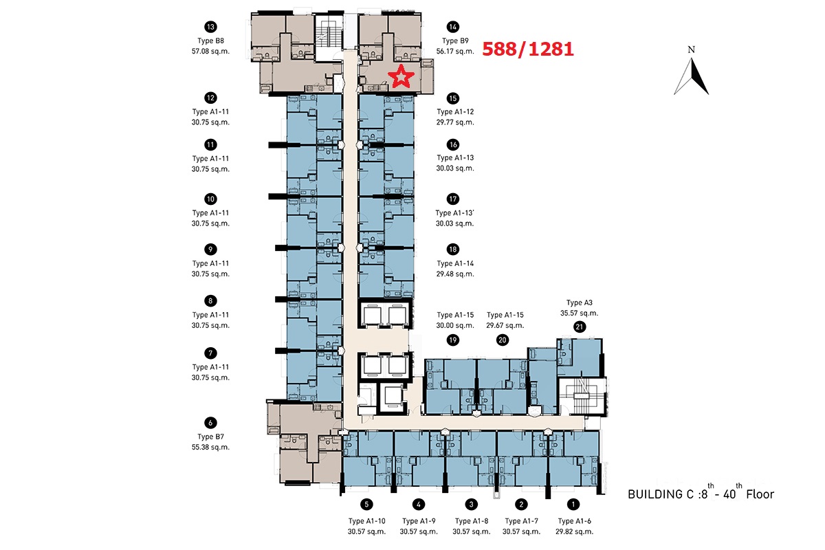 ขายราคาถูก คอนโด The Saint Residences 2-Bed ชั้นสูง ห้องสวย ระเบียงตะวันออก