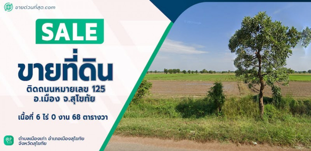 ขาย ที่ดิน ขายที่ดิน ติดถนนหมายเลข 125 อ.เมือง จ.สุโขทัย เนื้อที่ 6 ไร่ 68 ตร.ว.