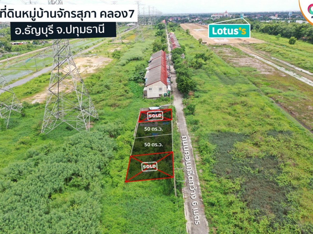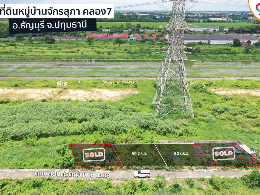 ขาย ที่ดิน คลอง 7 รังสิต ซอยชุมชนจักรสุภา 100 ตร.วา แปลงสี่เหลี่ยมสวย สาธารณูปโภคพร้อม เหมาะปลูกบ้าน
