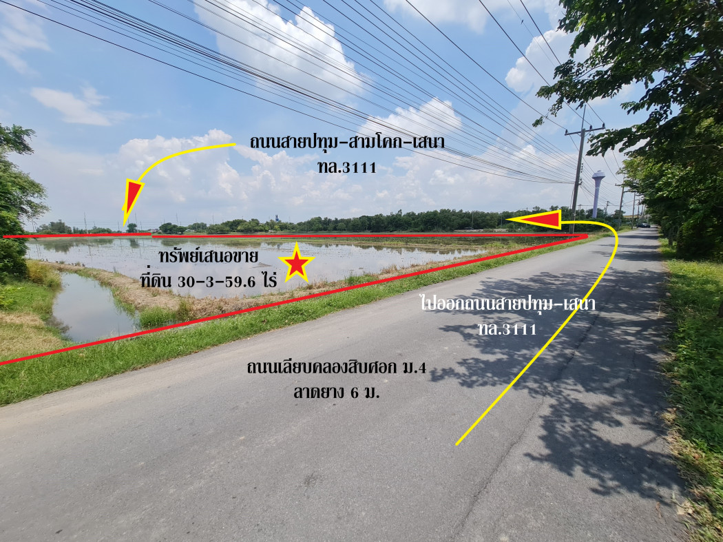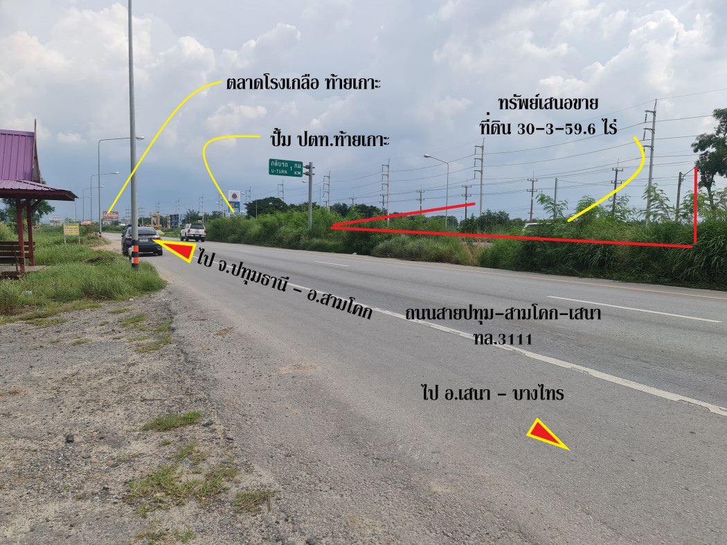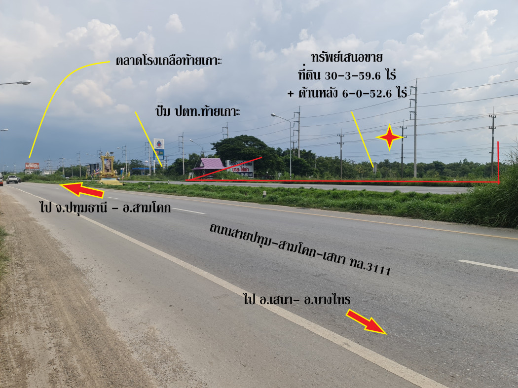 ขาย ที่ดิน ติดถนนสามโคก-เสนา ทล.3111 อ.สามโคก ปทุมธานี ทำเลดีพื้นที่ลงทุน เนื้อที่ 37 ไร่ 12.2 ตรว ลดลงราคา 36 ล้าน เจ้าของอยากขายมากๆ