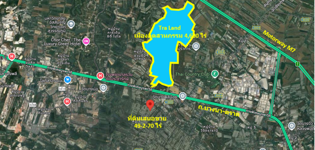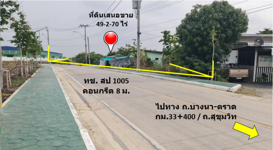 ขาย ที่ดิน ทำเลดี บริเวณชุมชนบ้านระกาศ อ.บางบ่อ เหมาะแก่การพัฒนาโครงการจัดสรร ถ.บางนา-ตราด 49 ไร่ 2 งาน 70 ตรว ผังเมืองสีเหลือง พร้อมโอน