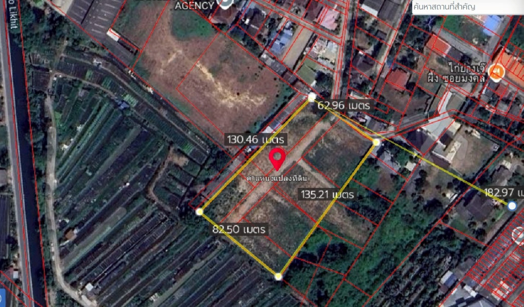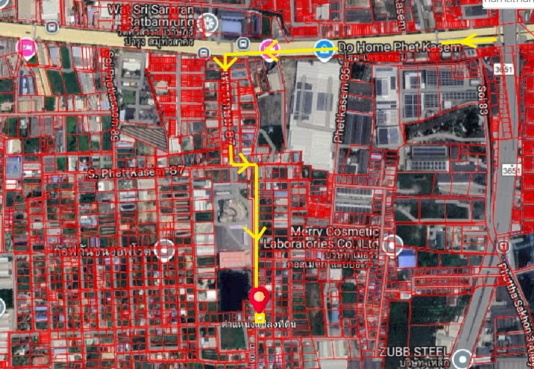 - ที่ดินถมแล้ว - ขนาดรวม 2439 ตรว. - ผังเมือง: สีแดง พ.2-5 - แปลงใหญ่ทรงสวย ขนาด 6 ไร่ 39 ตรว ( 2439 ตร.ว.) - หน้ากว่าง 63 ม. ลึก 130 ม. (โดยประมาณ)